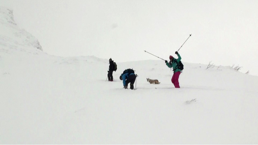 そんな屈辱的な尺取り虫滑降で樹林帯まで高度を下げ、そこで昼食を採りながら天候の回復を待った。
