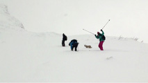 尺取り虫式に10メートル程度交互に誰かを先行させて斜度を測りながら高度を下げた。
