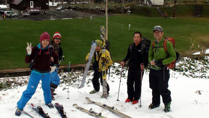 週間天気予報では晴れだったが、当日は曇天で気温が低かった。しかし、低温の方が登りで疲れないし、前日降った新雪の雪質が保たれる。風さえ無ければ焼肉はできる。