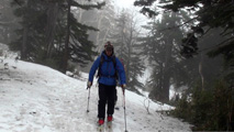 登山口の樹林帯からシール登行開始。板を担がないのは気持ちが良い。木立を縫うように雪を繋ぐのは、迷路を行くようで楽しかった。なんとか西の谷まで一度も板を脱がずに到達。