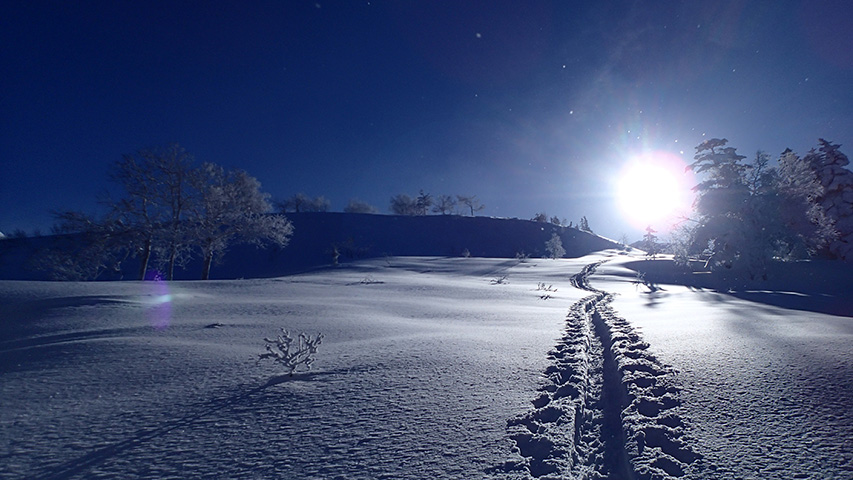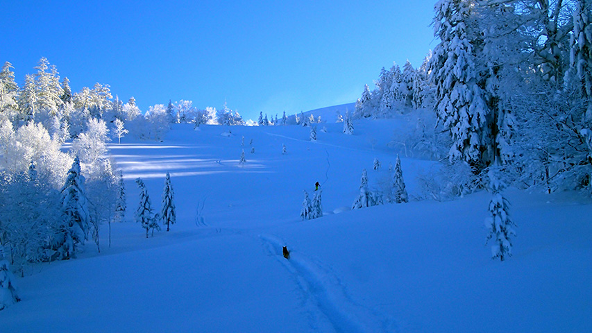 ![]() 西の谷を滑る 西さん |
