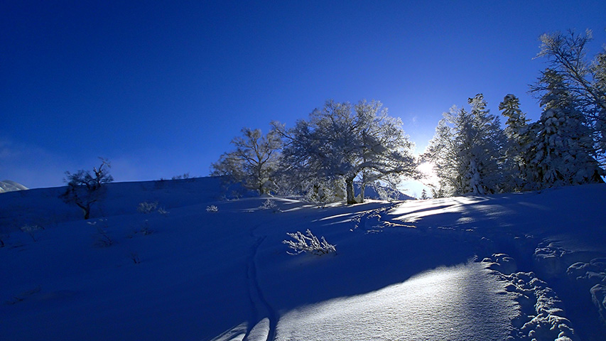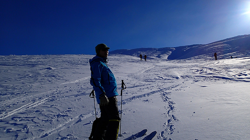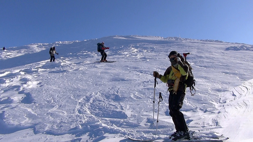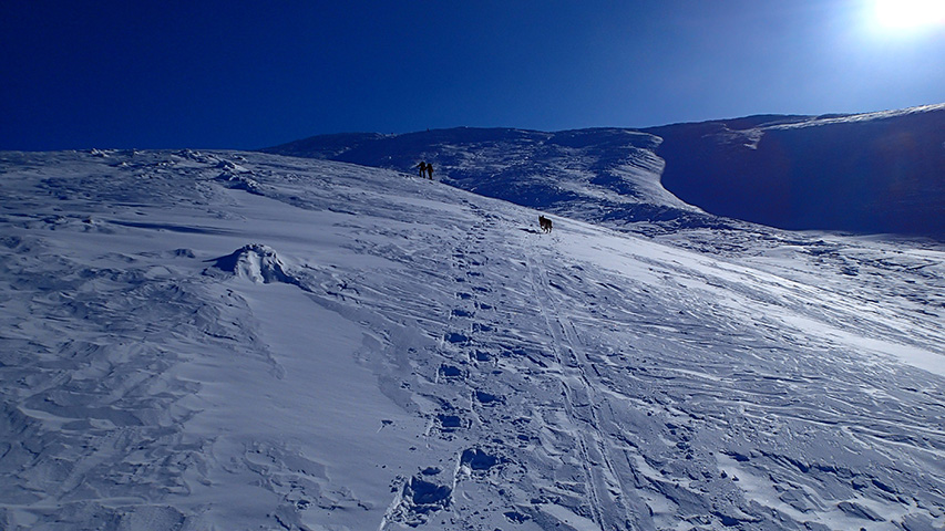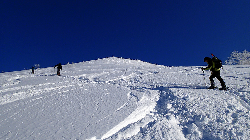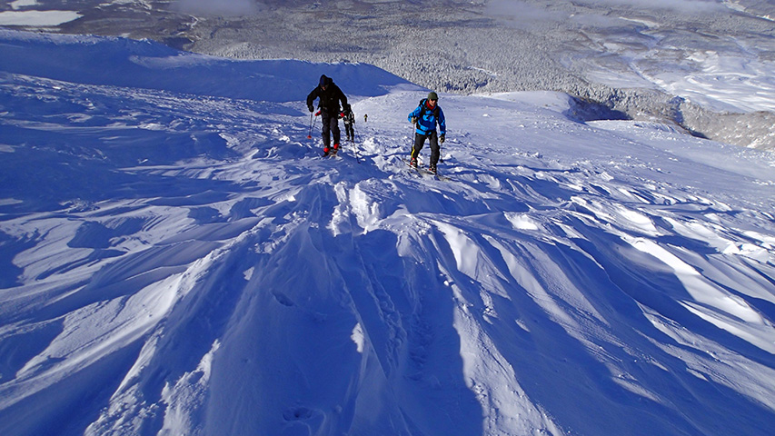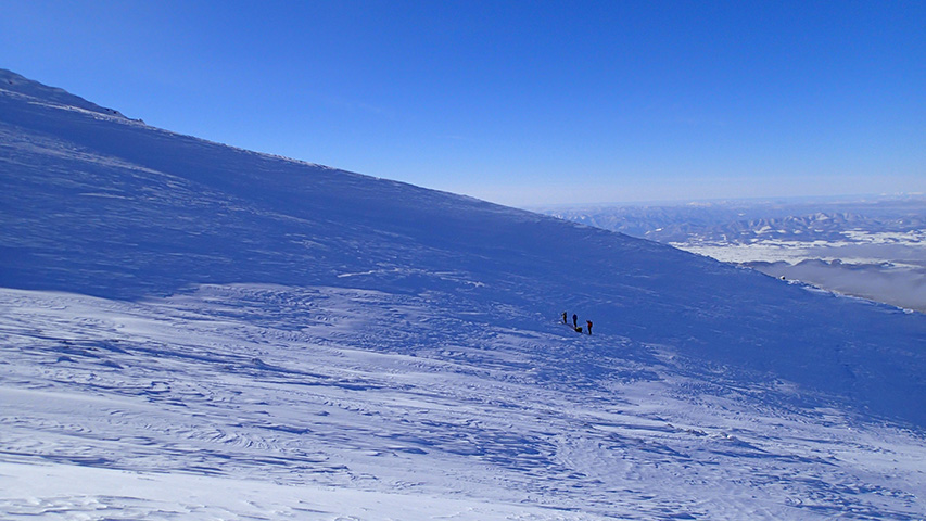 ![]() 西の尾根の雪が良かったので登り返し |