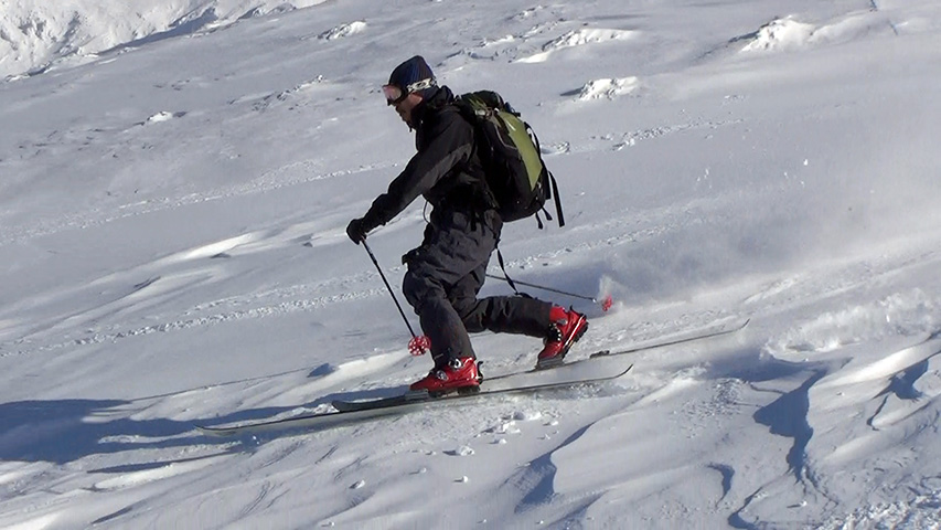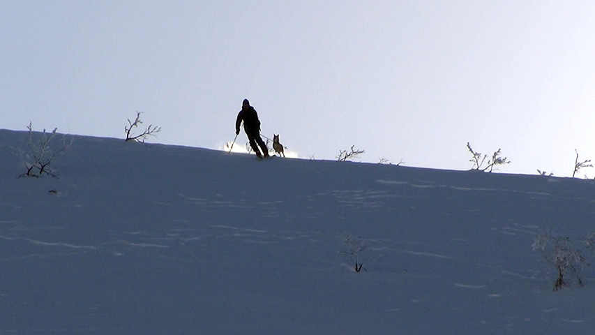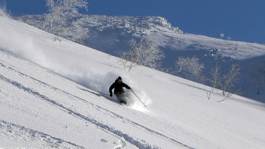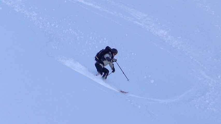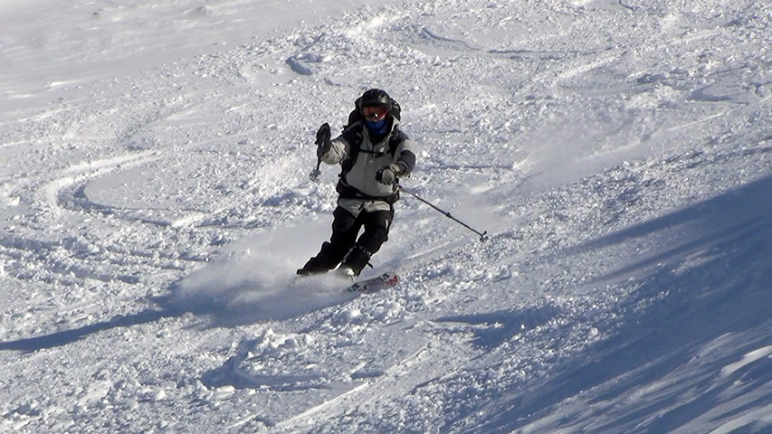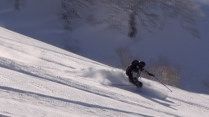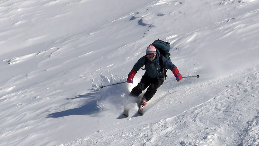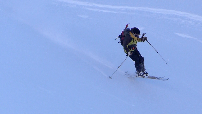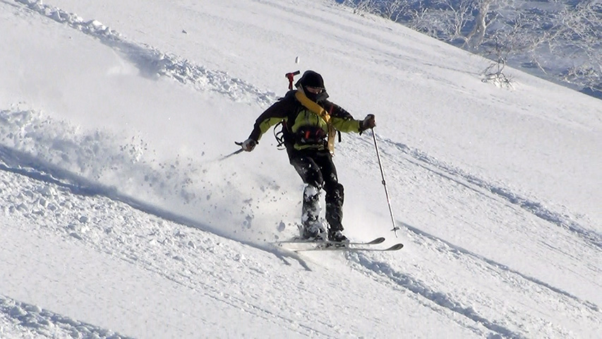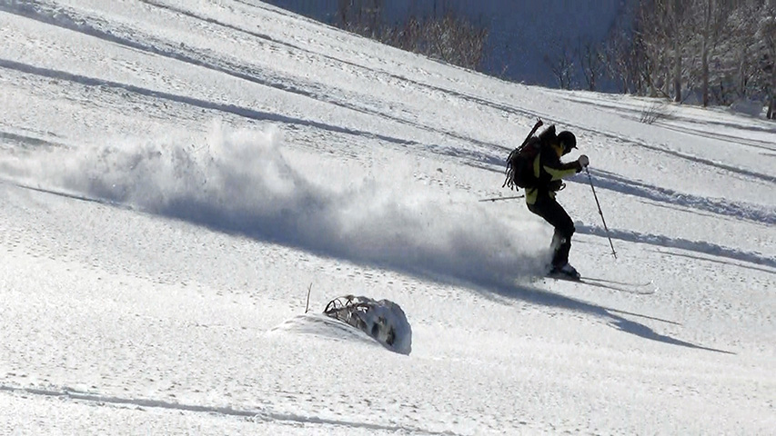 ![]() 西の尾根を滑る 田中パパ |