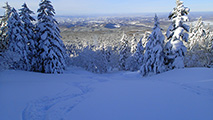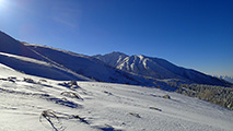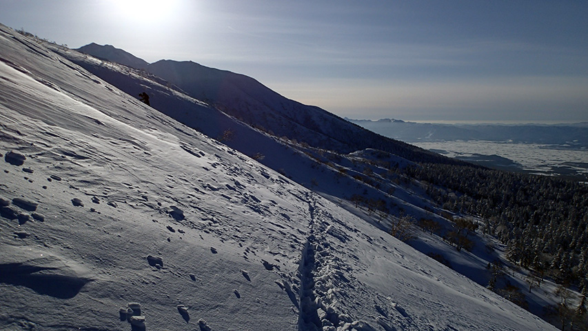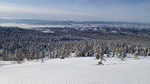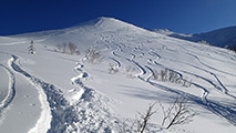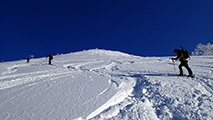 ![]() シュプールだらけになった西の尾根 |