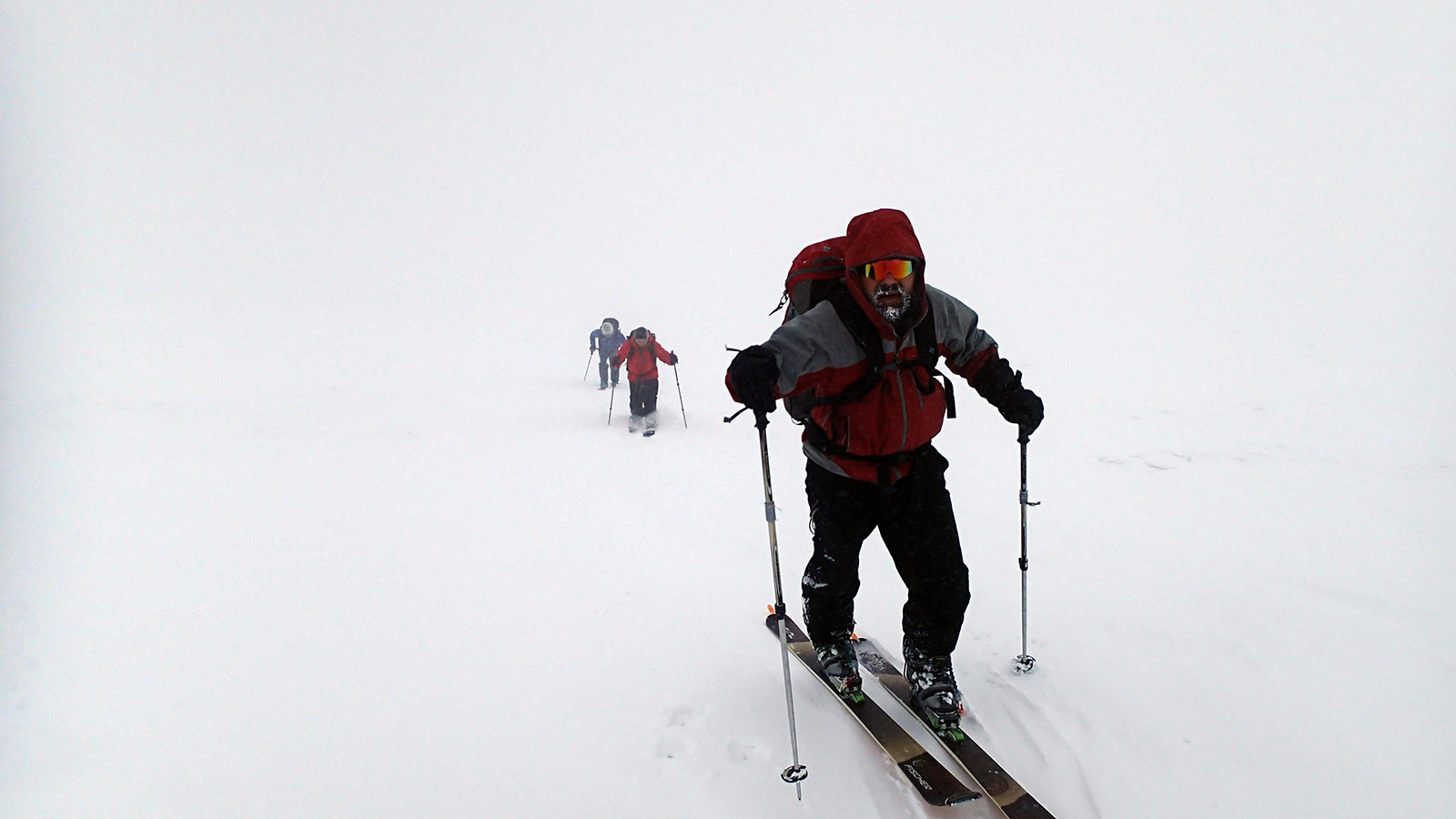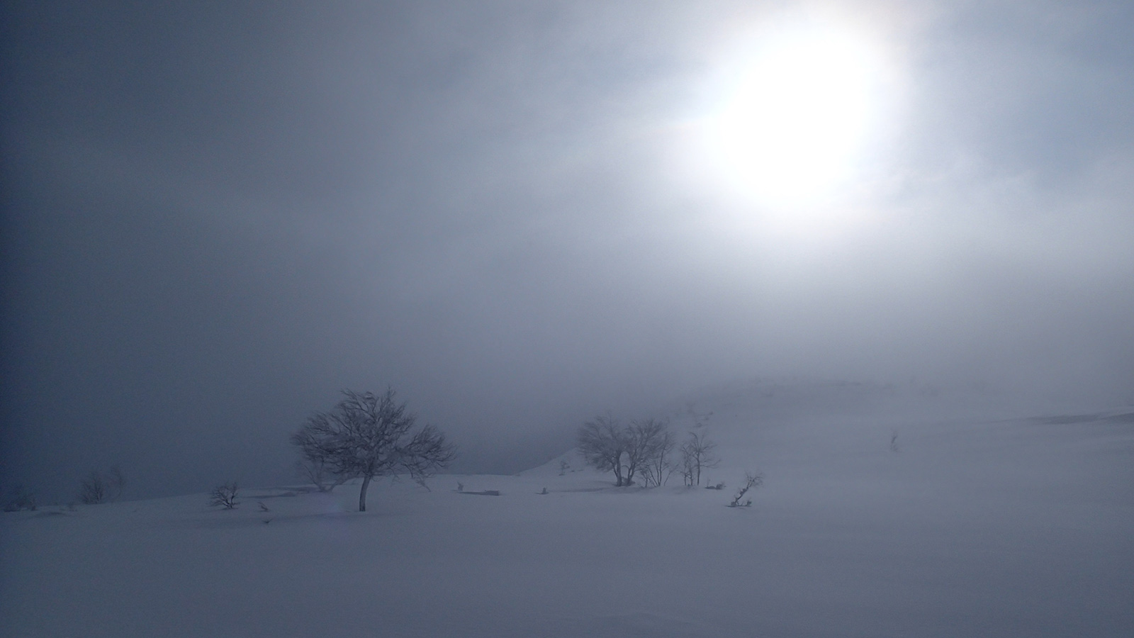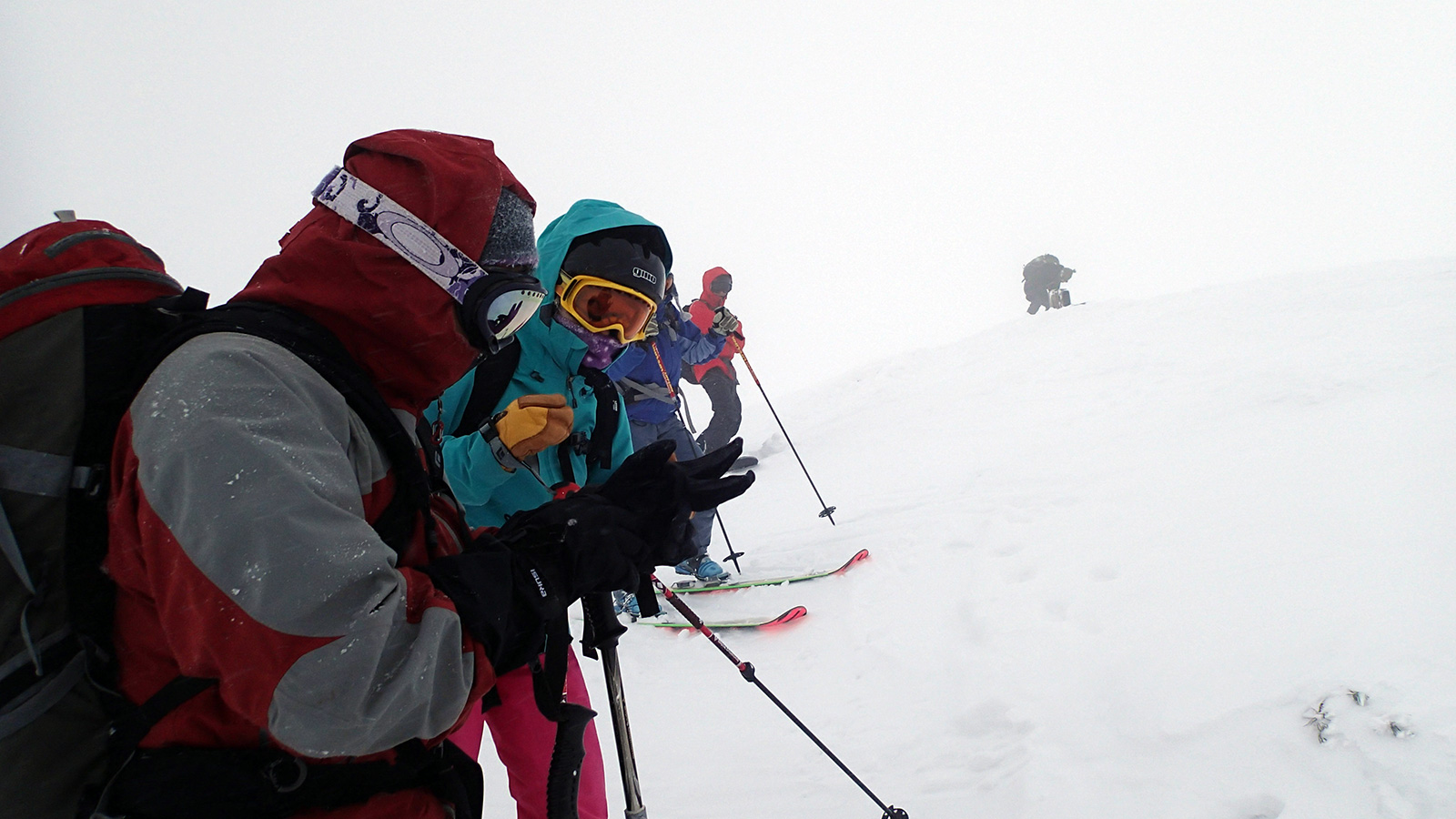 三段山スキーツアー(厳しい山頂ホワイトアウト)