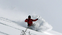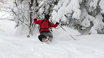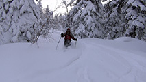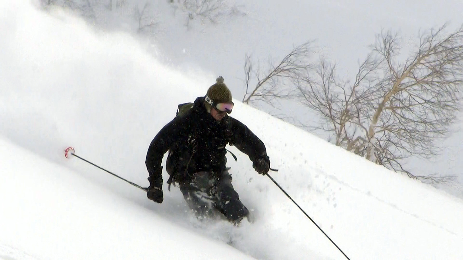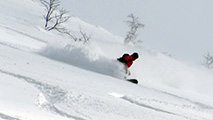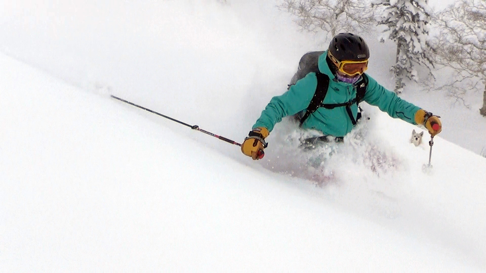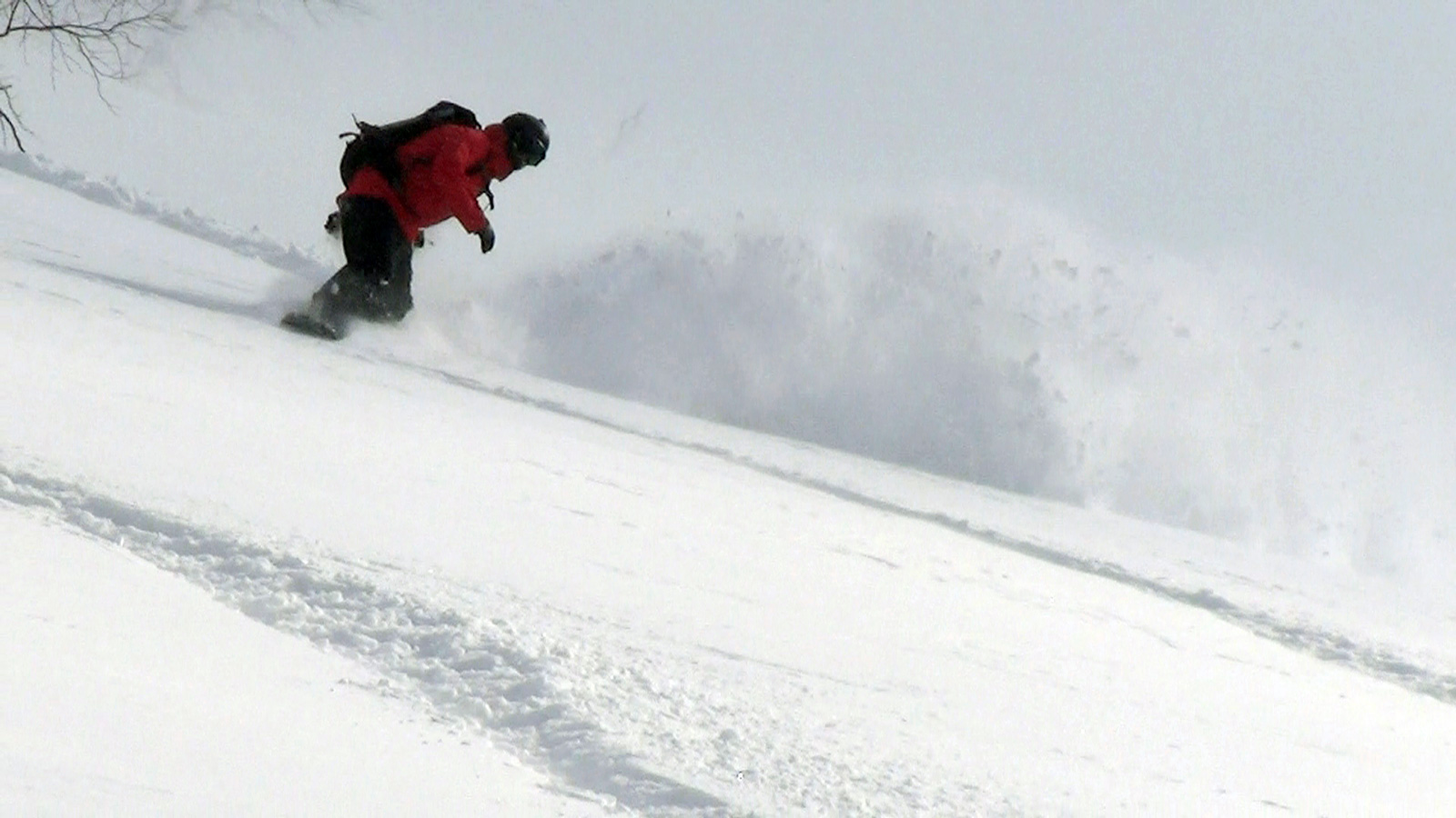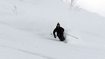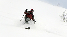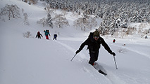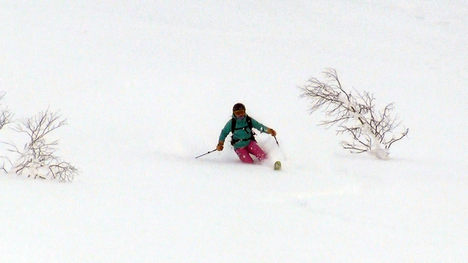 西の谷の雪質は、みっしりと重めのパウダー。嫌らしい感じだが滑る分には申し分なし。