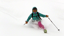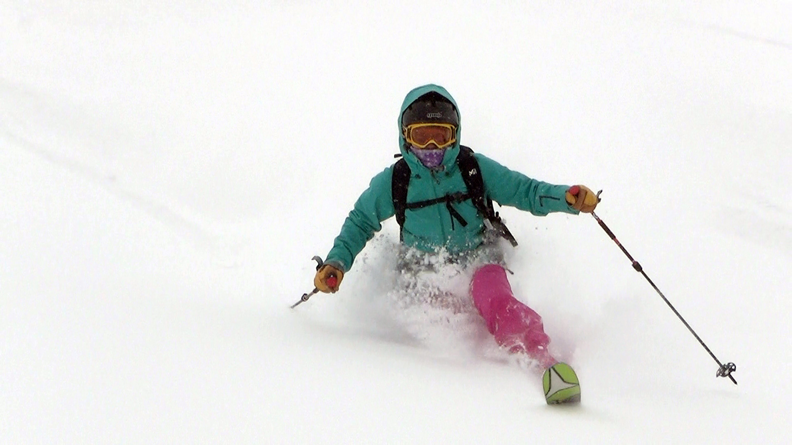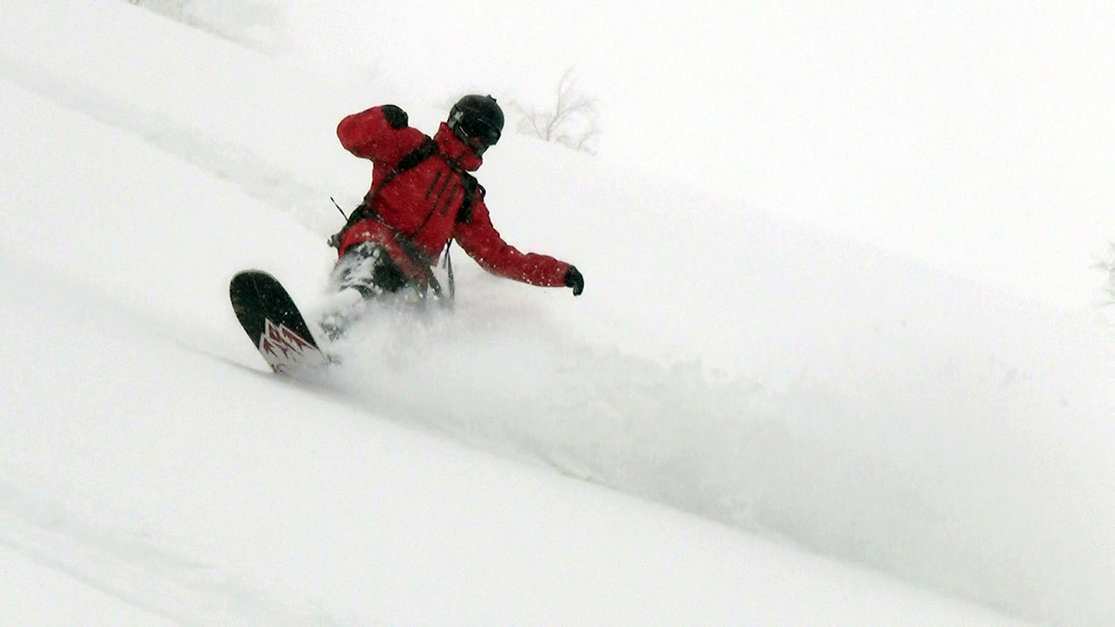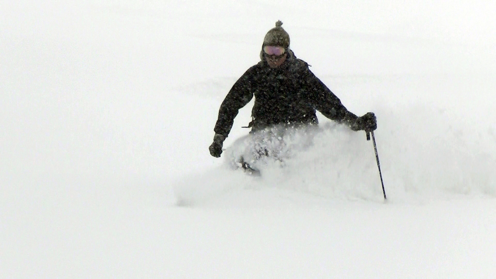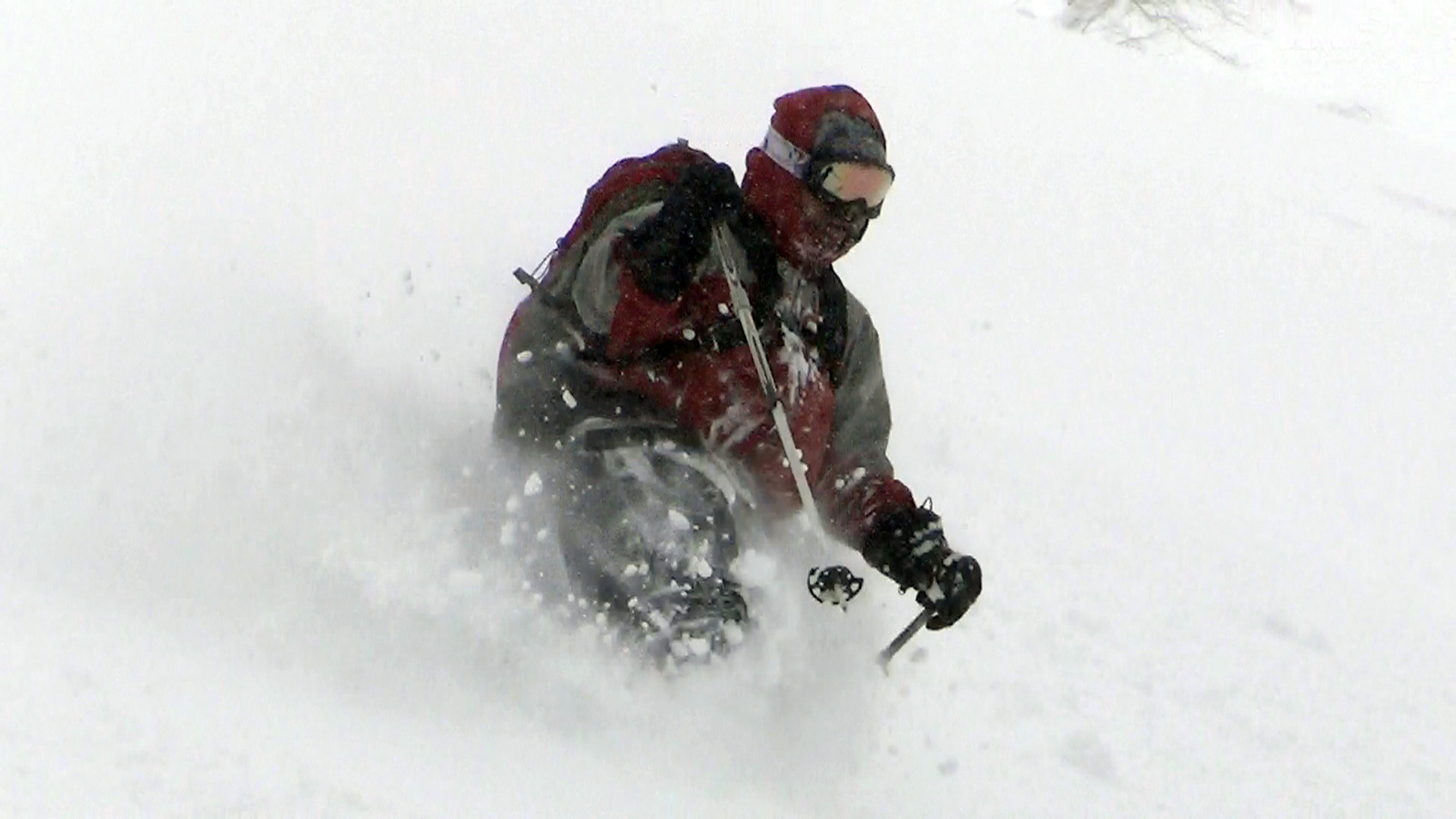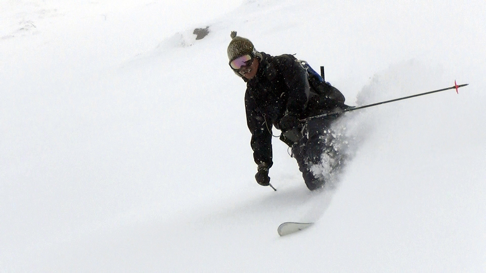 西の谷の雪質は、みっしりと重めのパウダー。嫌らしい感じだが滑る分には申し分なし。