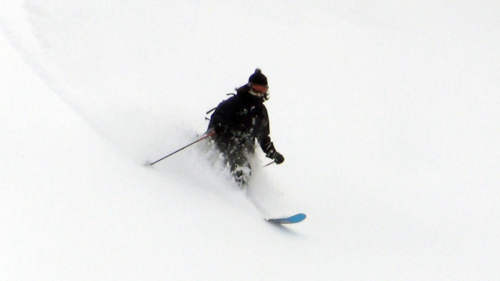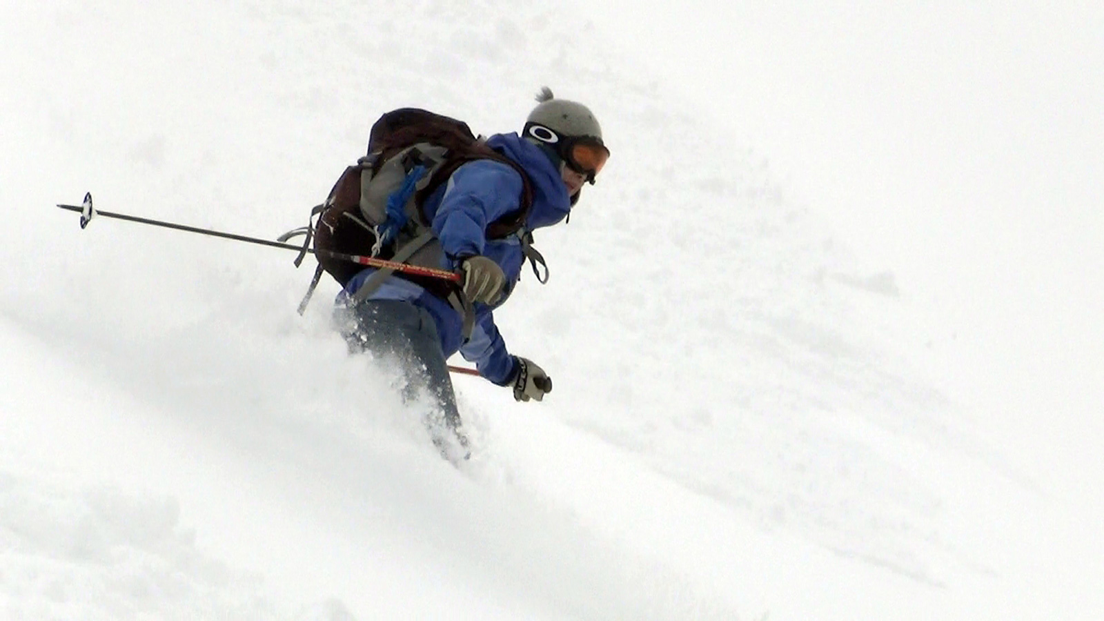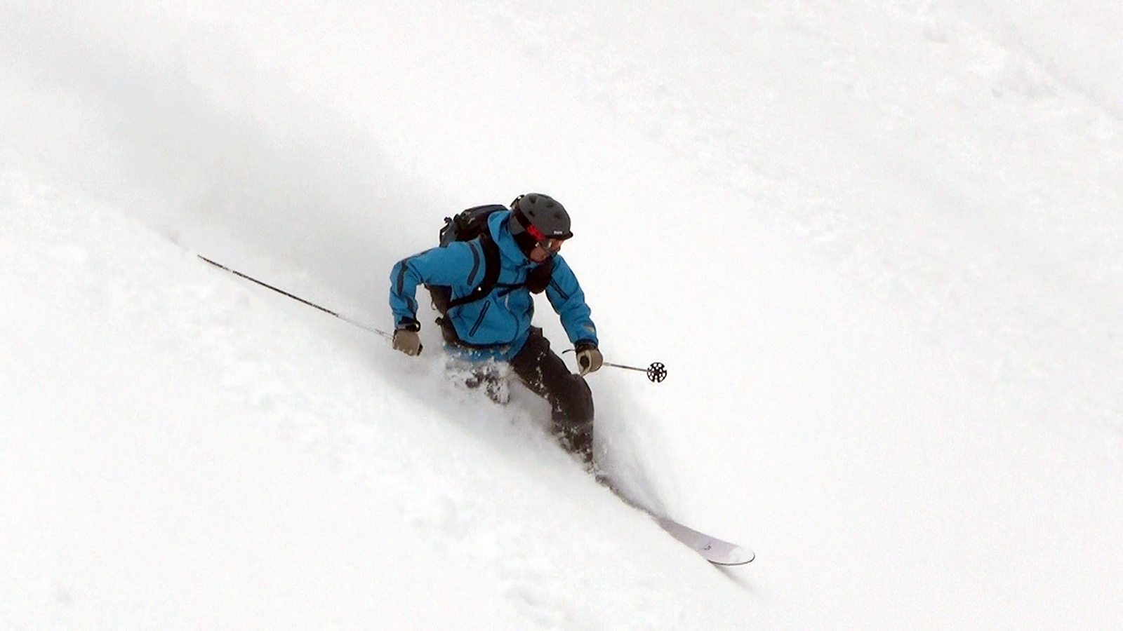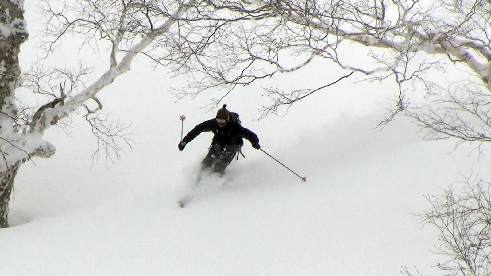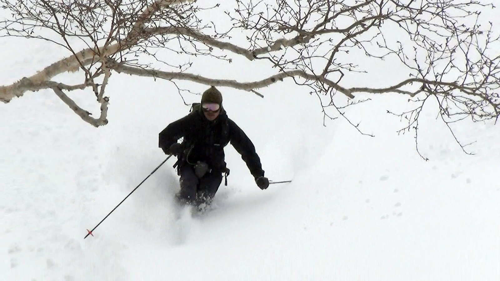 ツアーは、出発時は快晴。気温も-5度程度とまずまずのコンディションだと思ったが、高度を上げるにしたがい風が強くなり、標高1400m付近から上部ではシュカブラが発達していた。上部の視界も悪そうだったので、早々に山頂からの上ホロ撮影を諦めて東の谷へ滑り込むこととした。