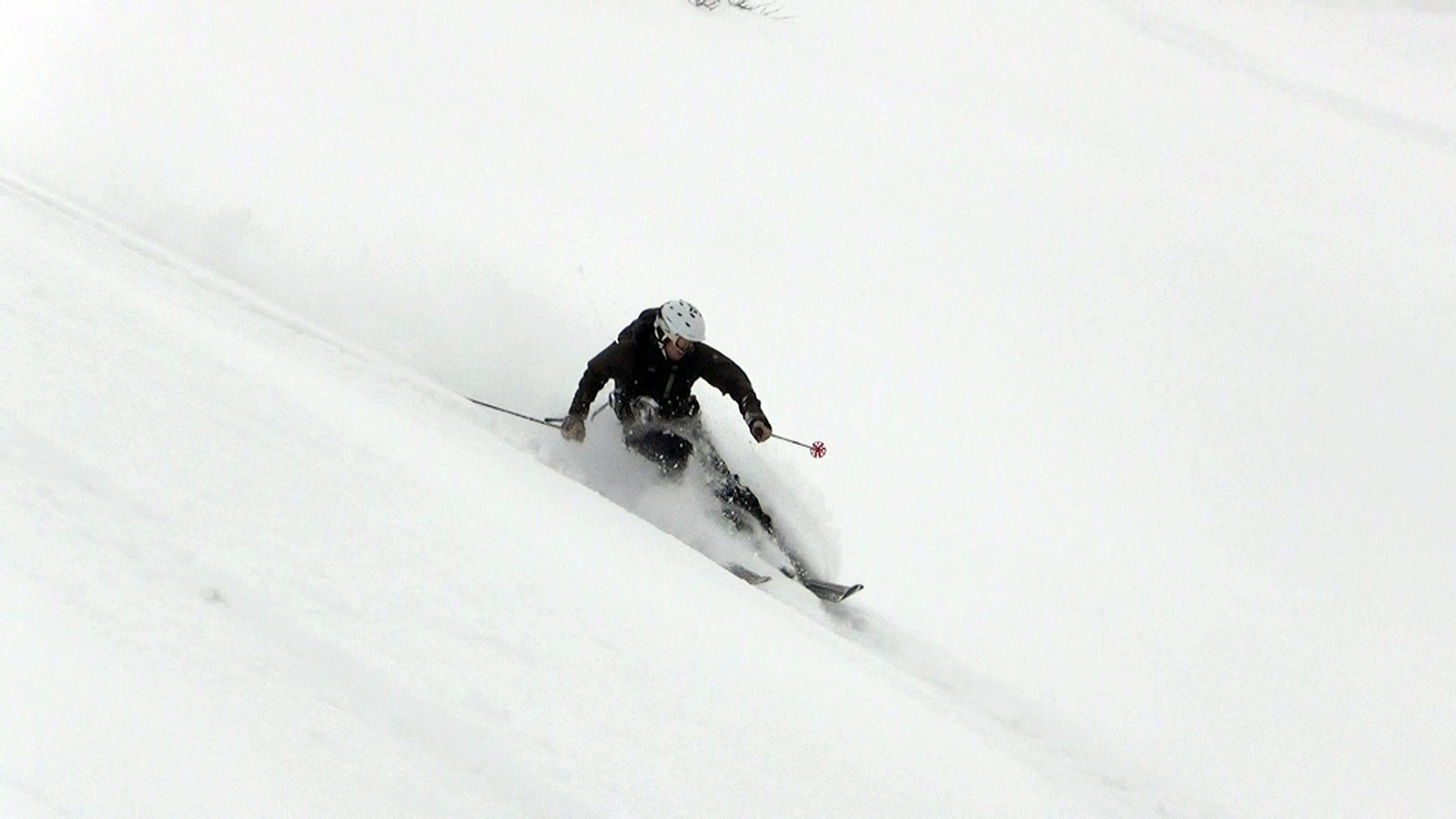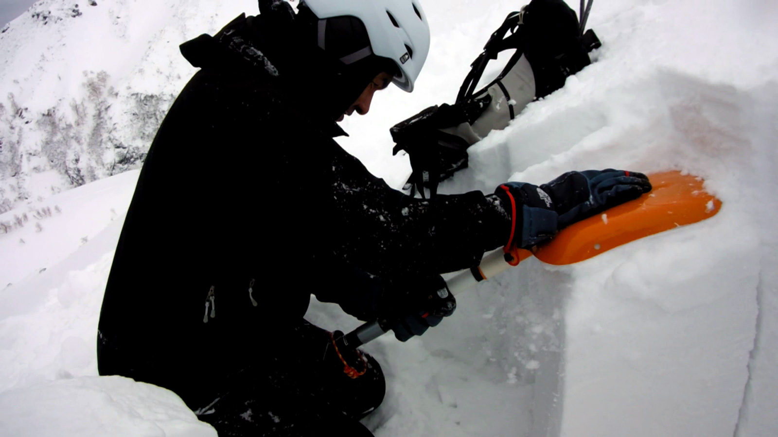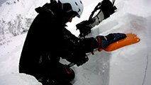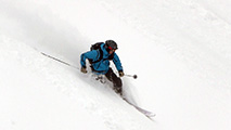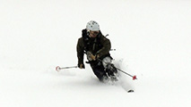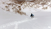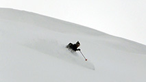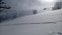 東谷上部でのコンプレッションテストの結果は、CTE4(BRK)down20cm。イージーとはいえ、破壊の位置が浅くブレイクだったこと。ベースがしっかりしていたことから雪崩が発生しても点発生で表層が少し流れるくらいだろうと判断して滑降。重ためとはいえこの時期にしては深いパウダーを味わえた。