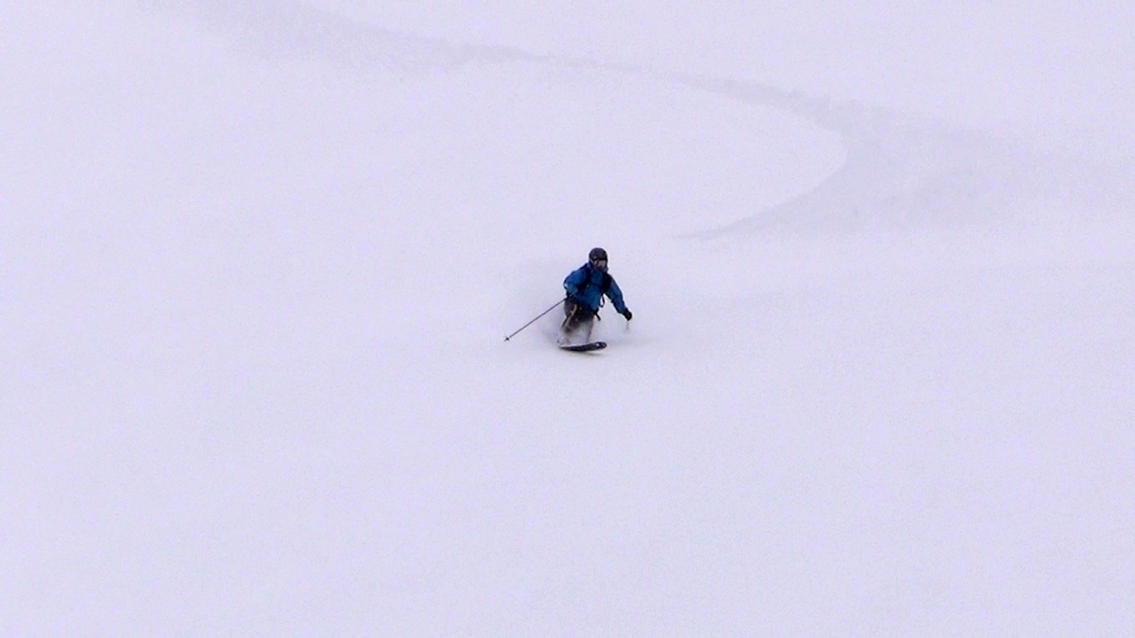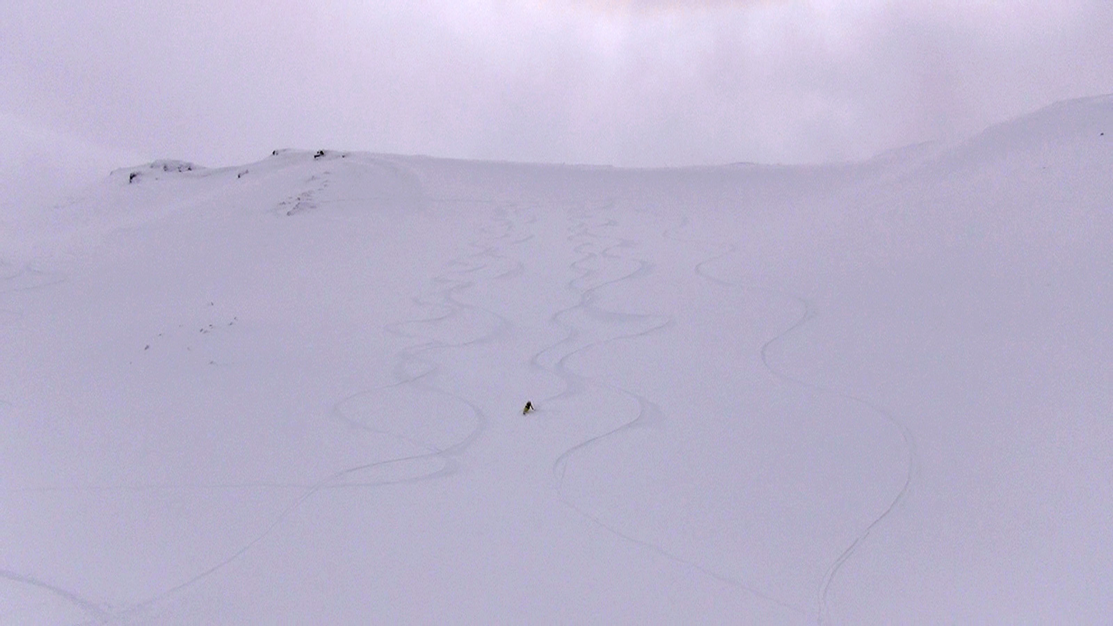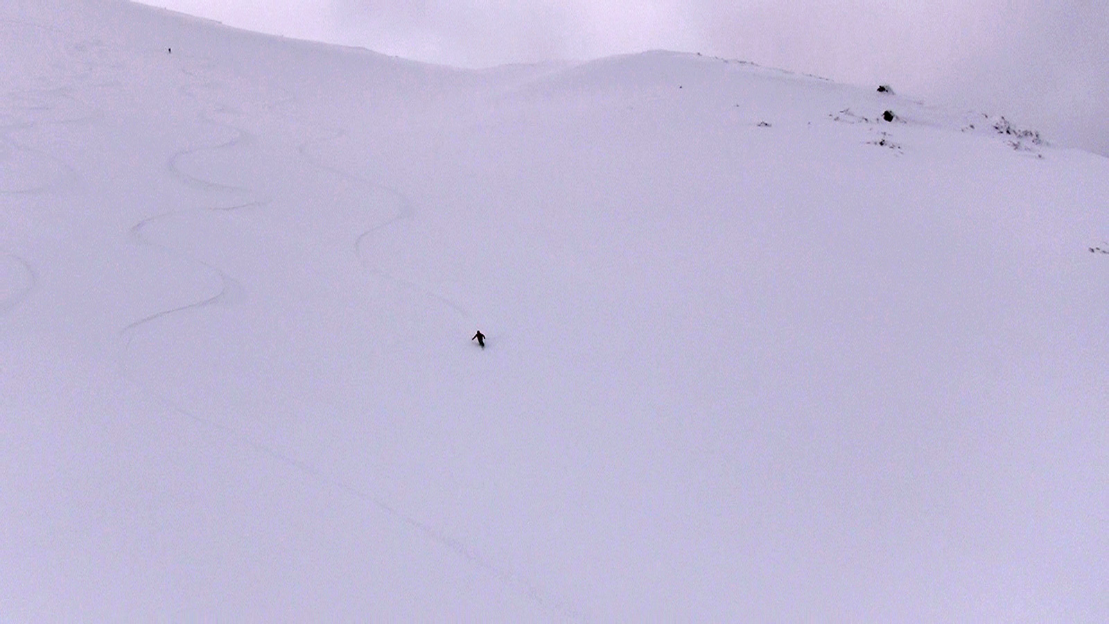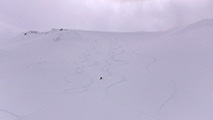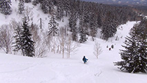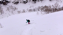 それでも、段々乗りこなしのコツを掴んで、重たい新雪のオーバーヘッドパウダーを楽しみながら東谷を滑降。今時期にこんな深い新雪を滑れるとは思わなかった。