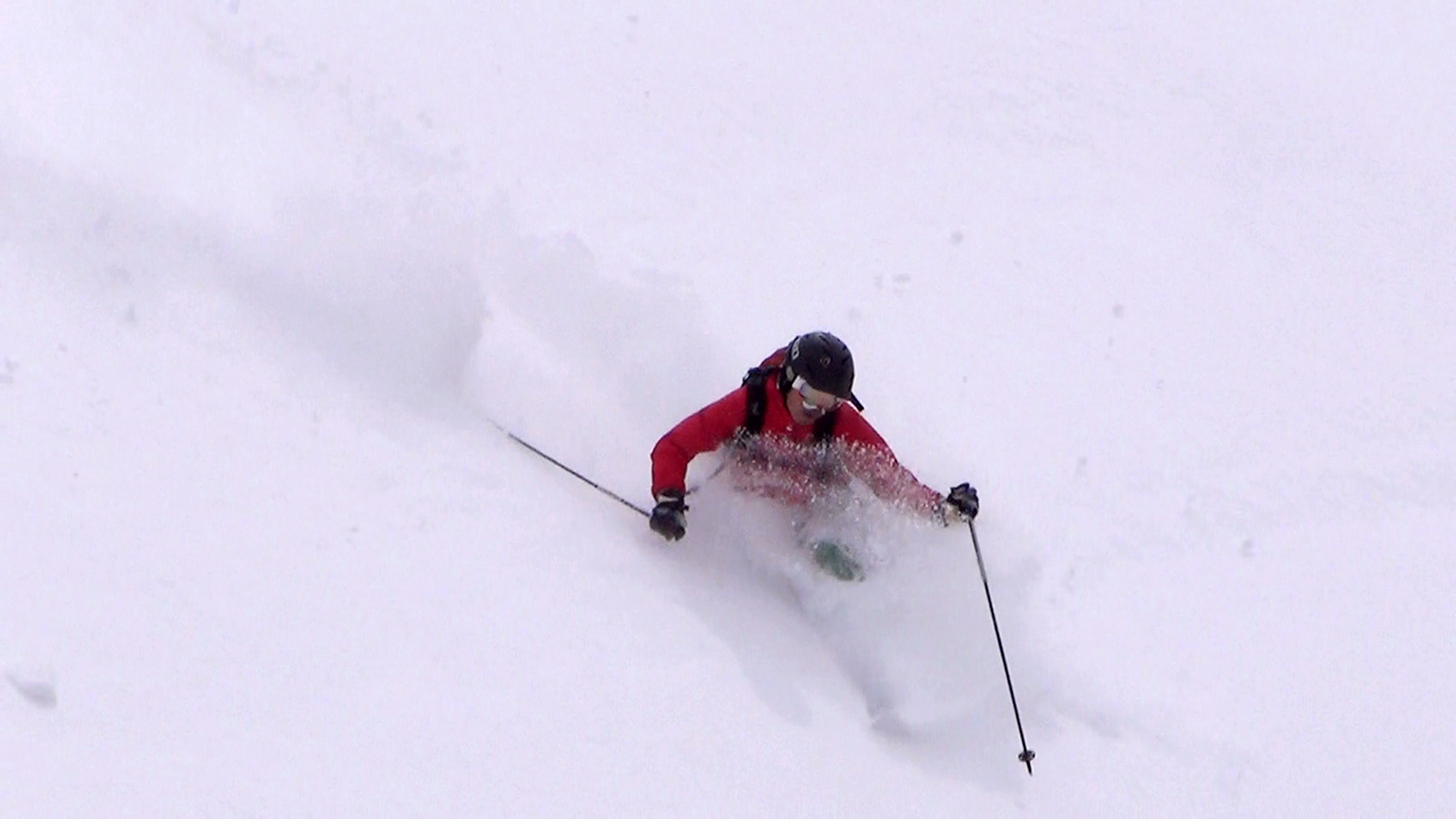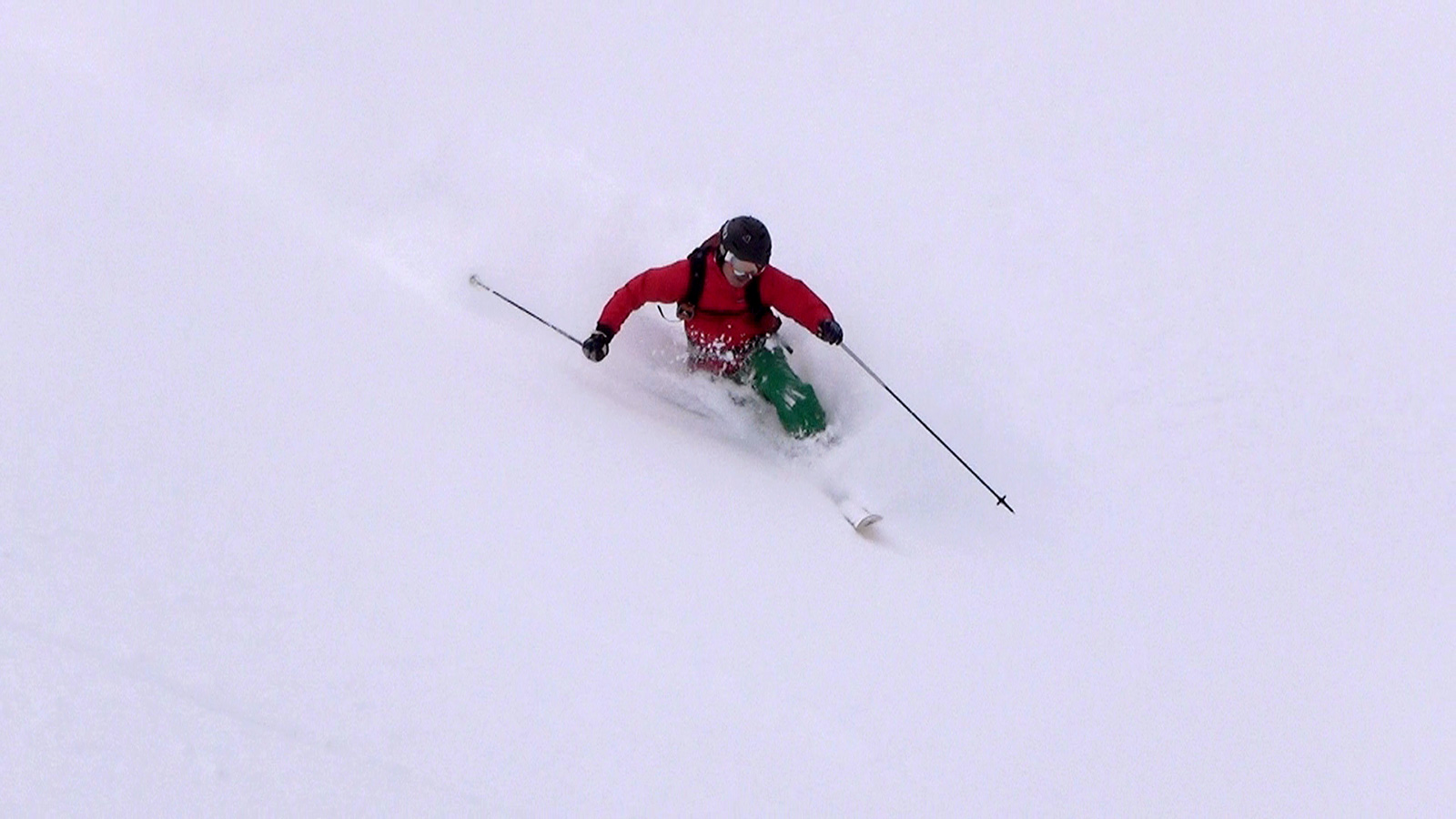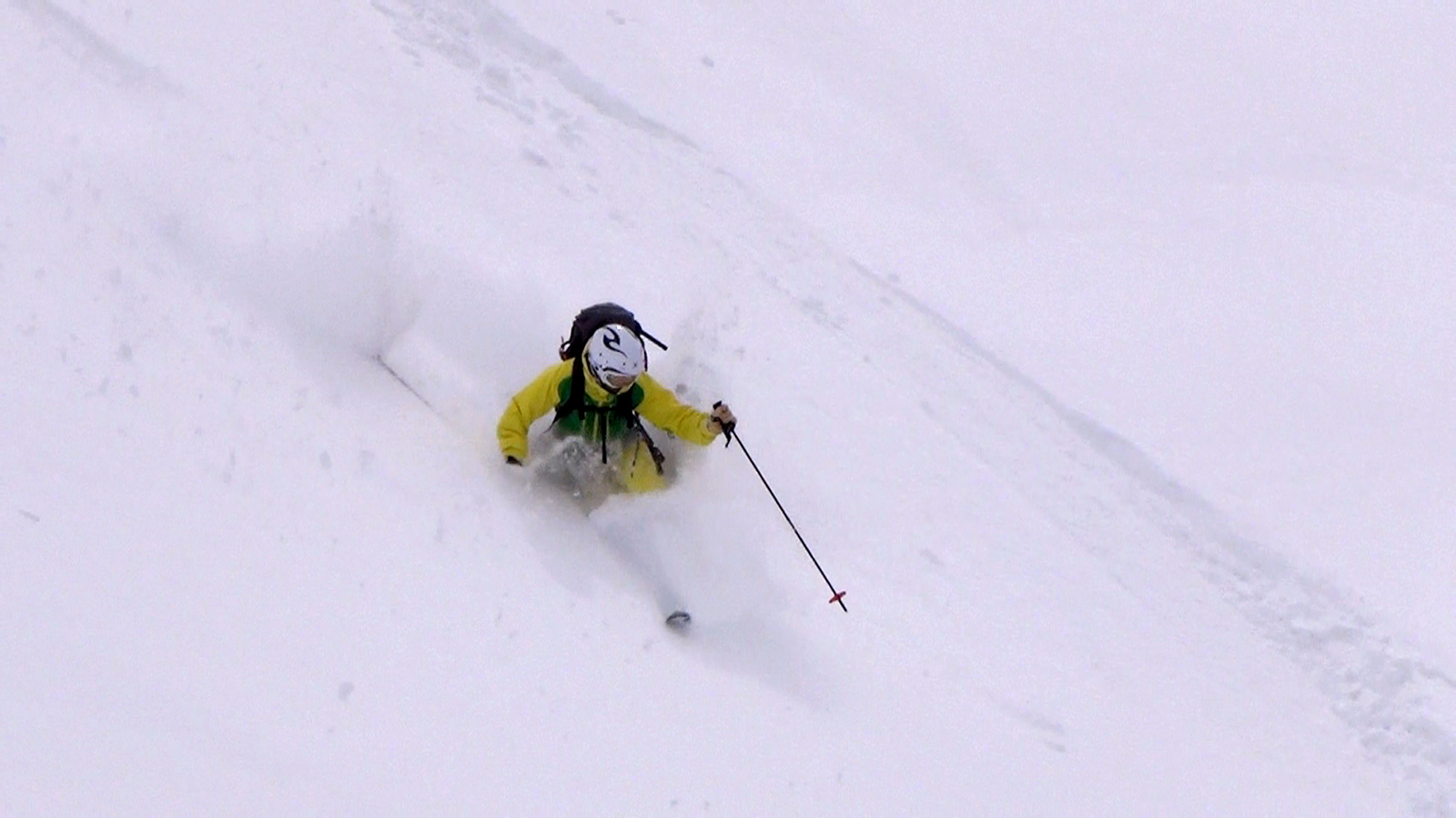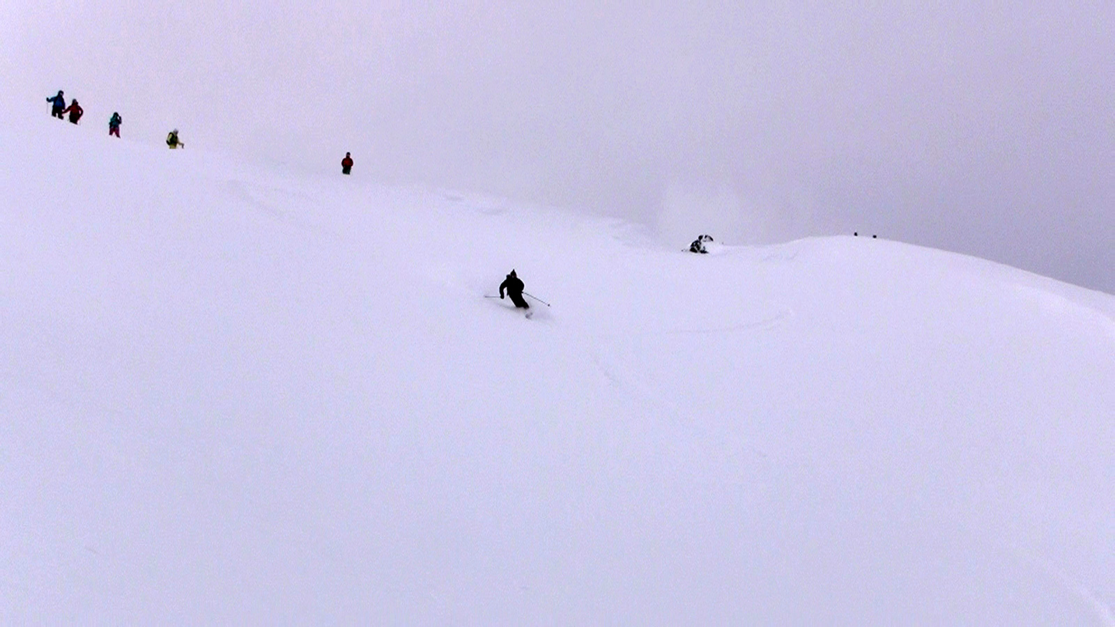 それでも、段々乗りこなしのコツを掴んで、重たい新雪のオーバーヘッドパウダーを楽しみながら東谷を滑降。今時期にこんな深い新雪を滑れるとは思わなかった。