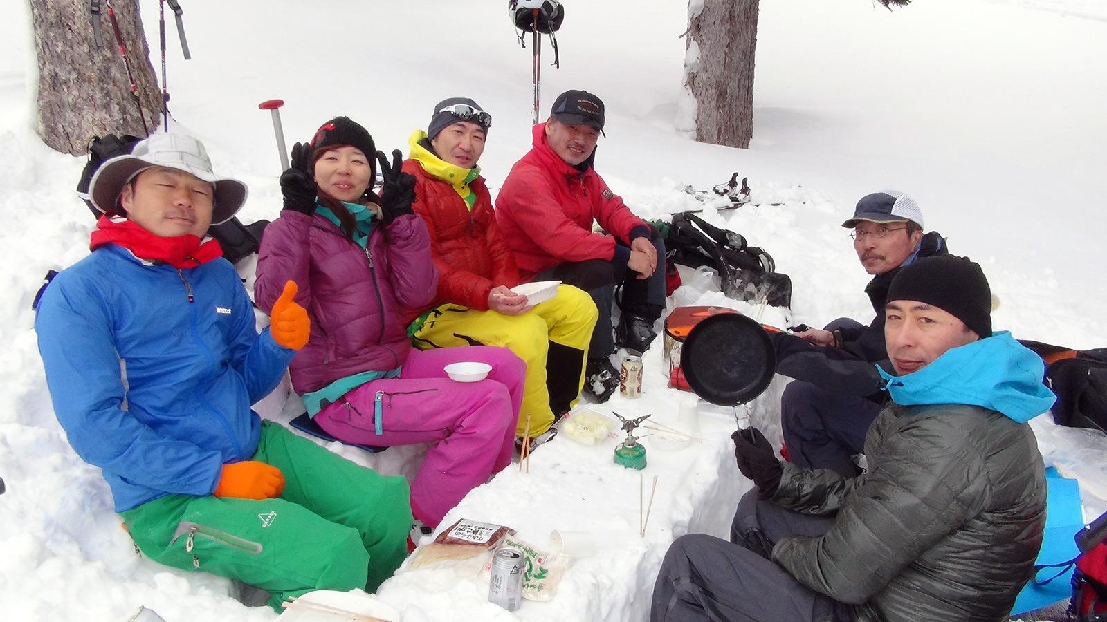 大テラスで焼肉をする予定だったが、予想外に風があったので2段目の樹林帯で焼き肉を行い終了。滑りと焼肉が楽しめた良いツアーだった。