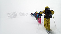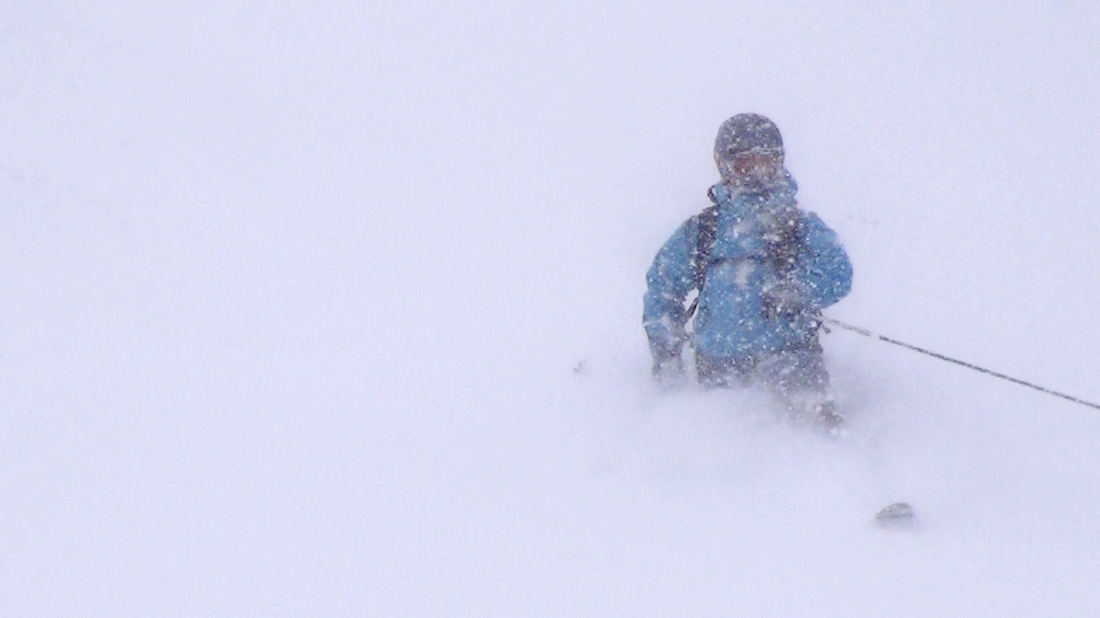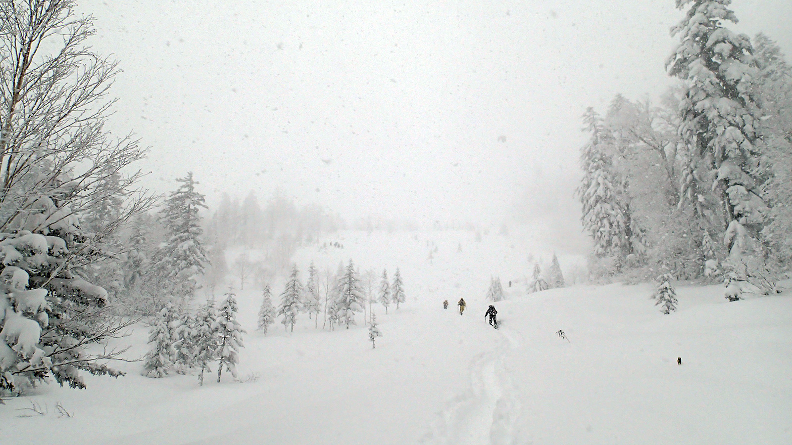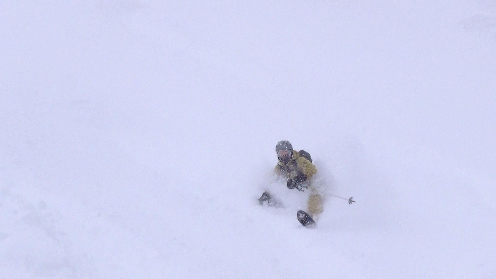 雪量・雪質:スキーでも膝までのラッセル。雪はウィンドスラブ化して重くシューティングクラック、ワッフ音が発生していた