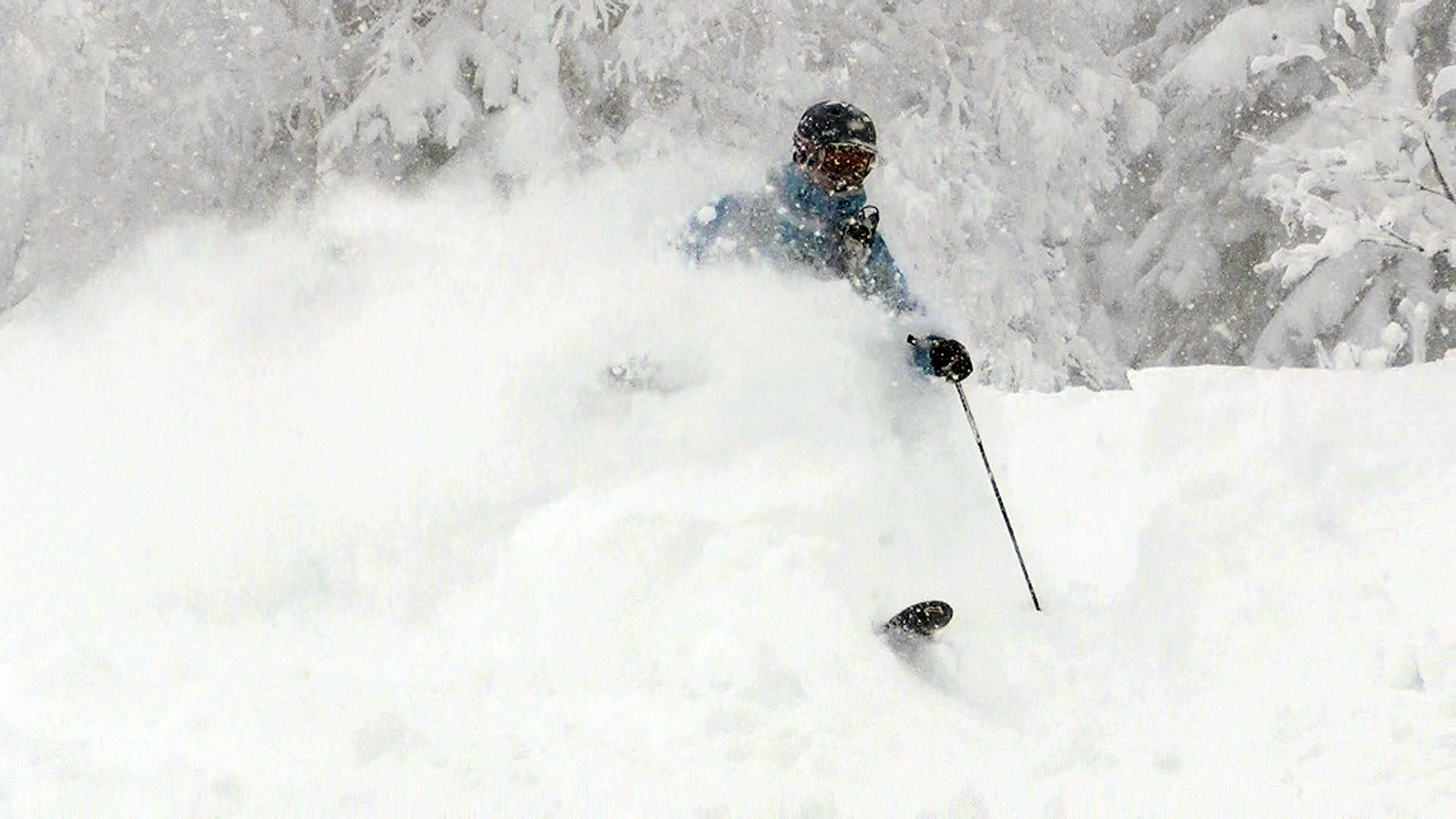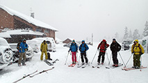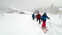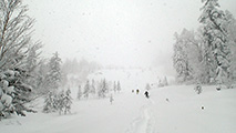 強風により、二段目より上には登れない状況でした。 大量の降雪があり、樹林帯ではつぼ足だと90センチも沈みます。 スキーでも膝までのラッセルとなります。 その積雪は、森林限界より上では強風によりウィンドスラブ化していて、雪崩の危険性があります。 30日には雪面の亀裂、ワッフ音が報告されています。 森林限界より上での風下の急斜面では雪崩に注意してください(テストピット地点では北風でしたが、二段目より上では西南西の風でした)。それ以外の斜面でも急斜面には十分に注意が必要です。 雪は深く、ラッセルしないと滑る事ができません。登りと下りのラインは同一にしたほうが良いでしょう。