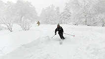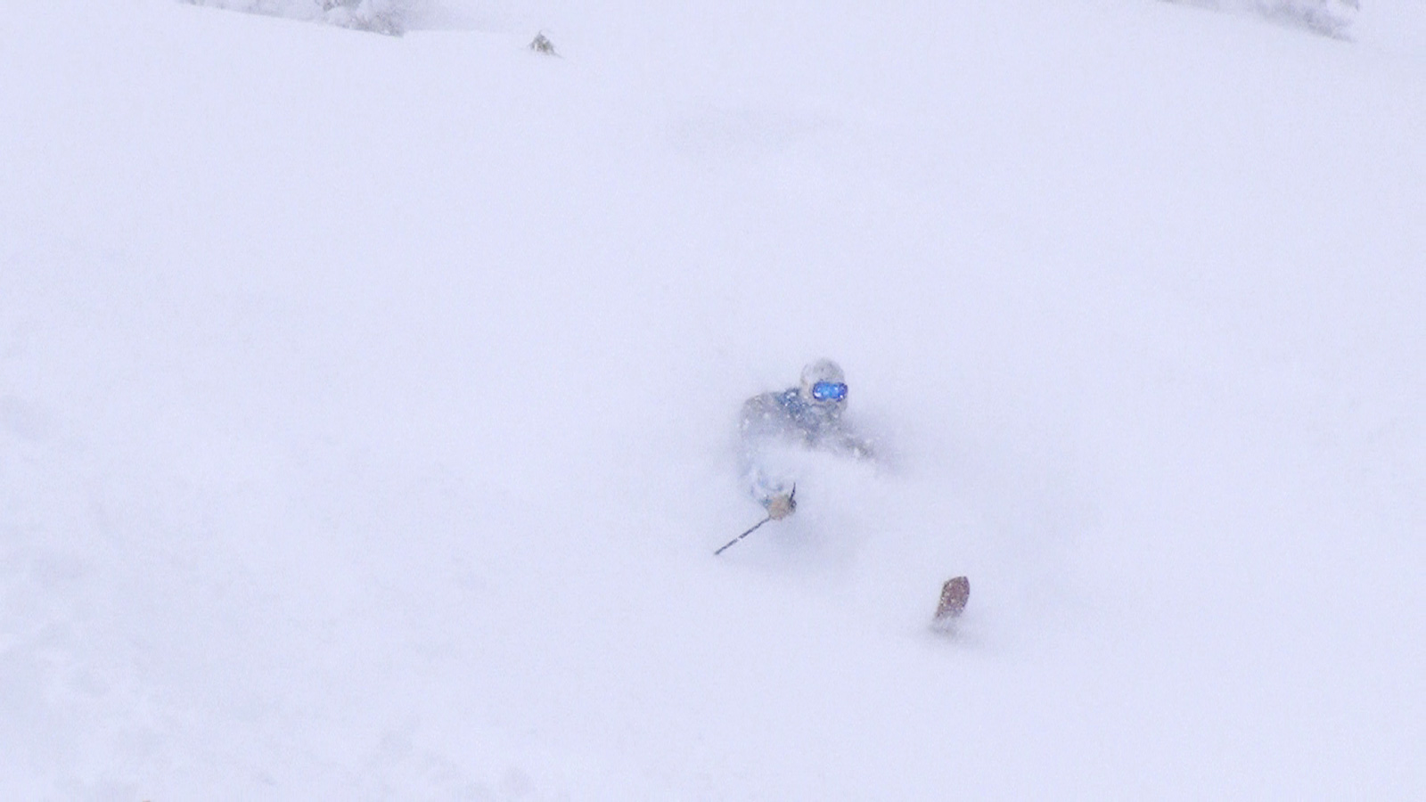 テスト地点では、風速はLightだったが、森林限界より上ではStrong。 森林限界より上ではHSTがウィンドスラブ化しており、シューティングクラック及びワッフ音と思われるものが発生していた。ワッフ音の原因と推測される霜系の弱層はCT(ブッシュにより深さ90cmまで)では発見されなかったが、持続型・ディープスラブ化を警戒する必要がある。森林限界より上は全域で危険だが、特に風下斜面への侵入は危険な状態。