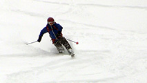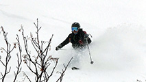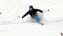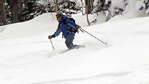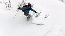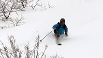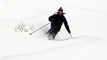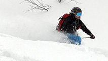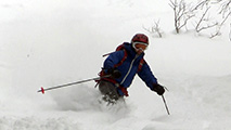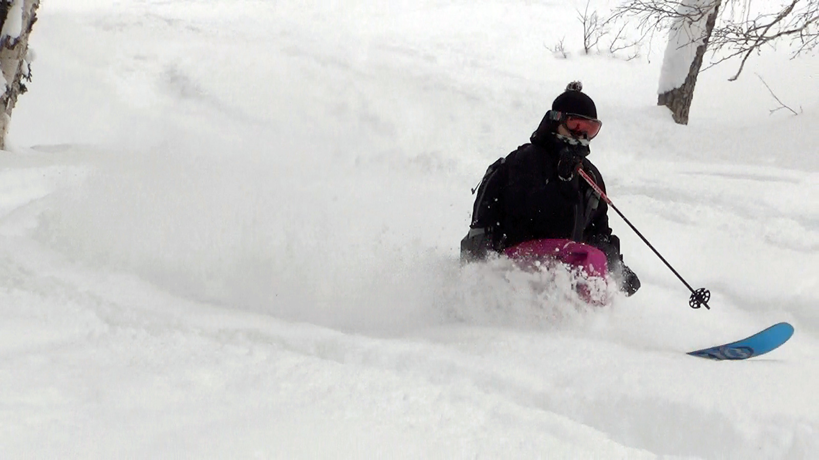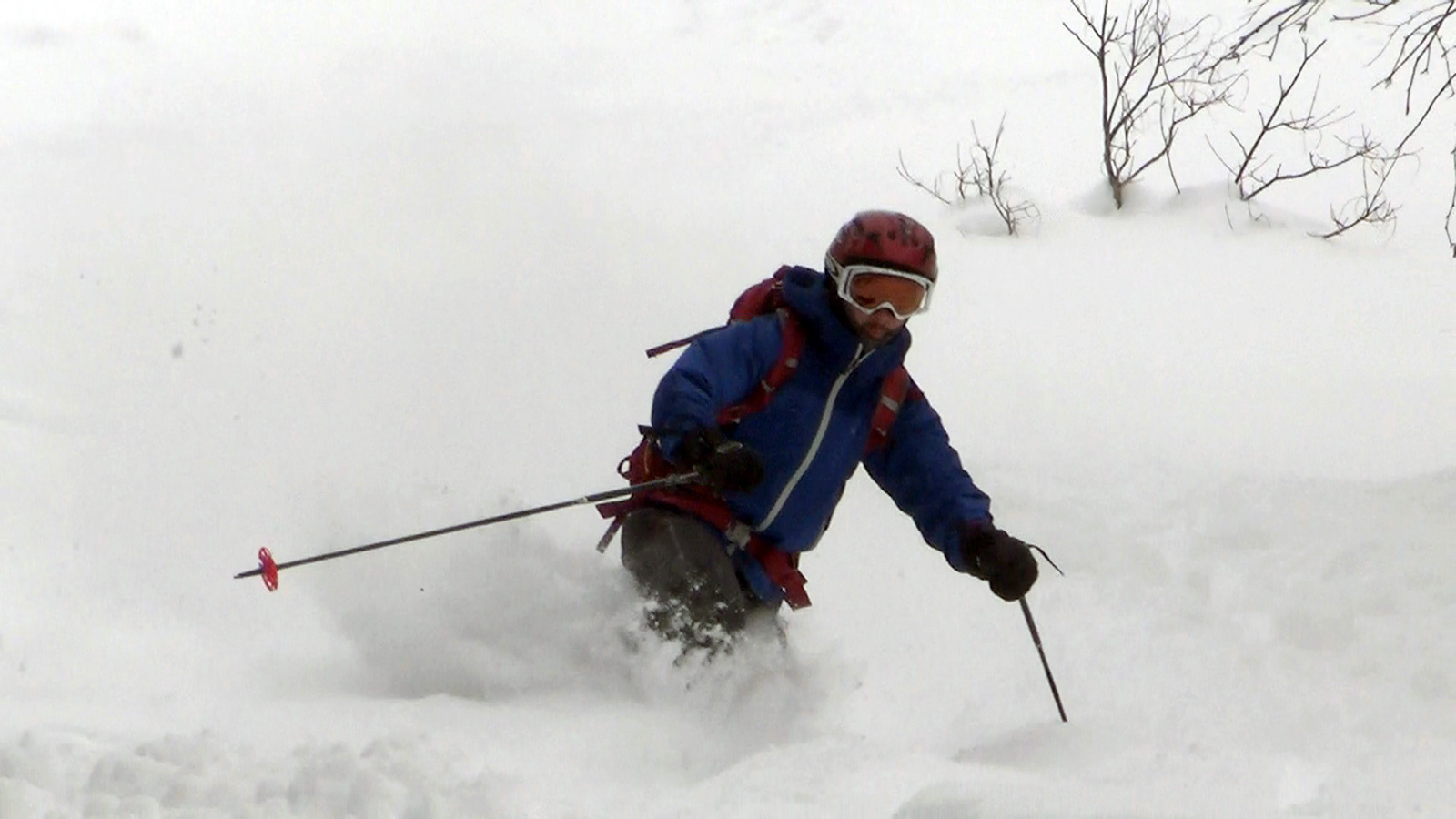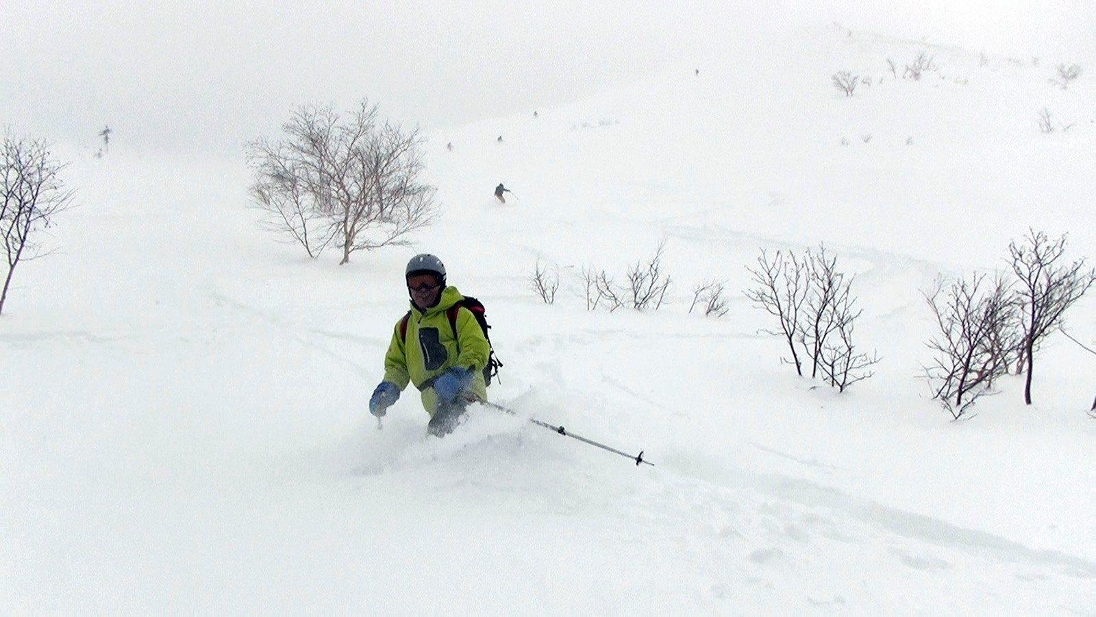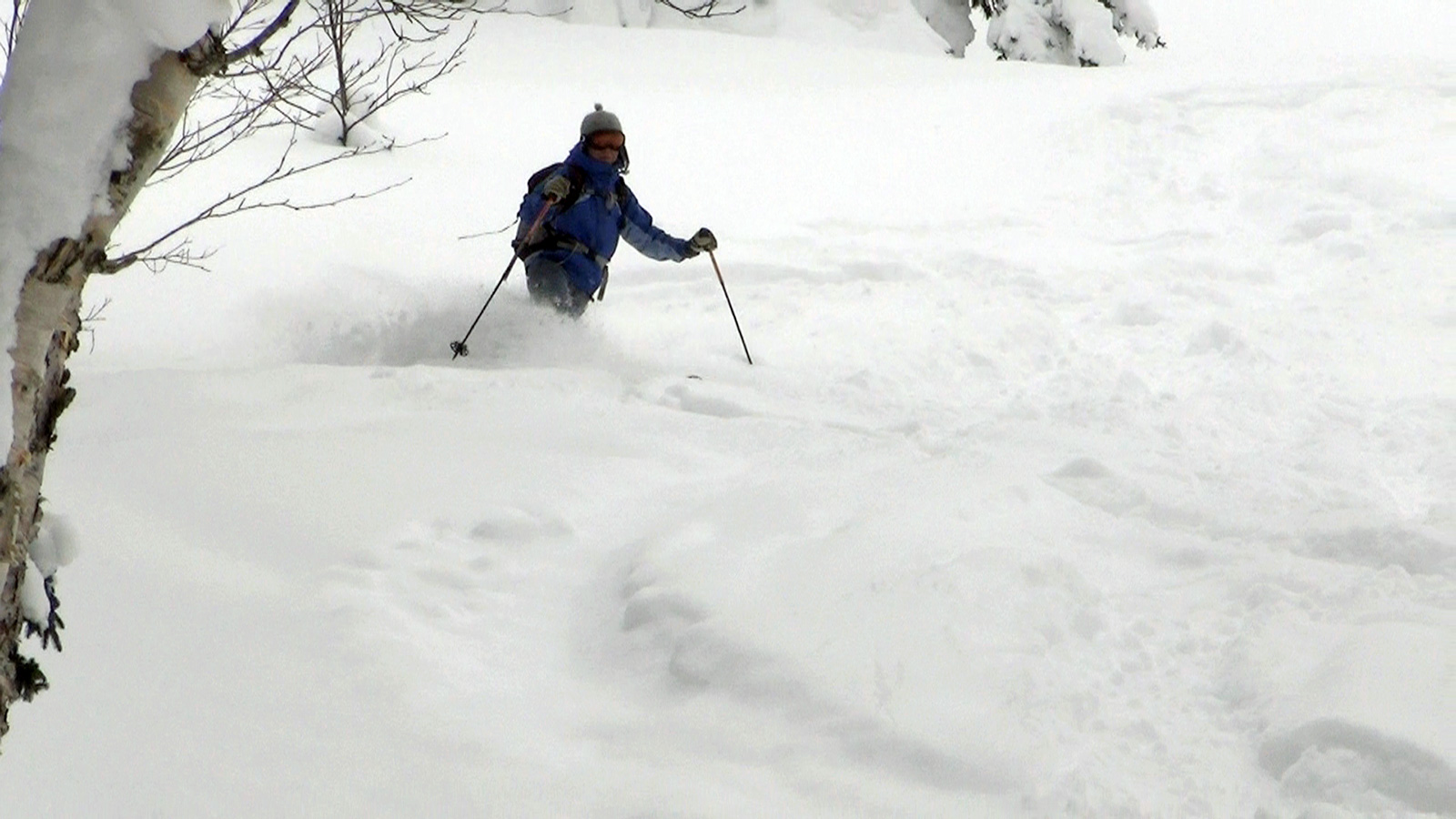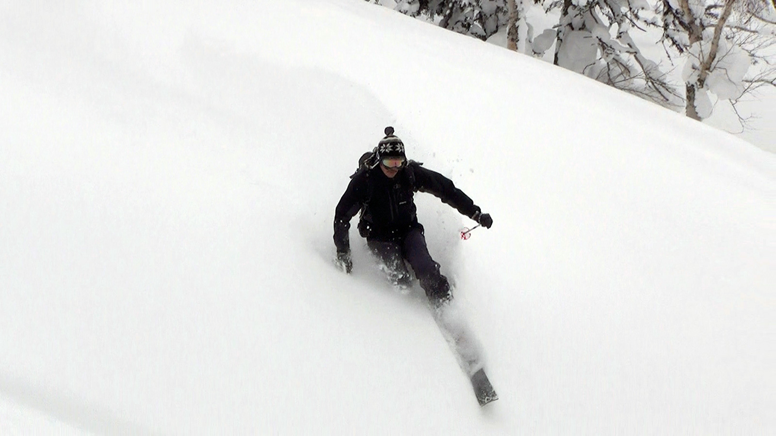 雪質:アルパインは重めのパウダー、一部ウィンドクラスト。樹林帯は全面重めのパウダー