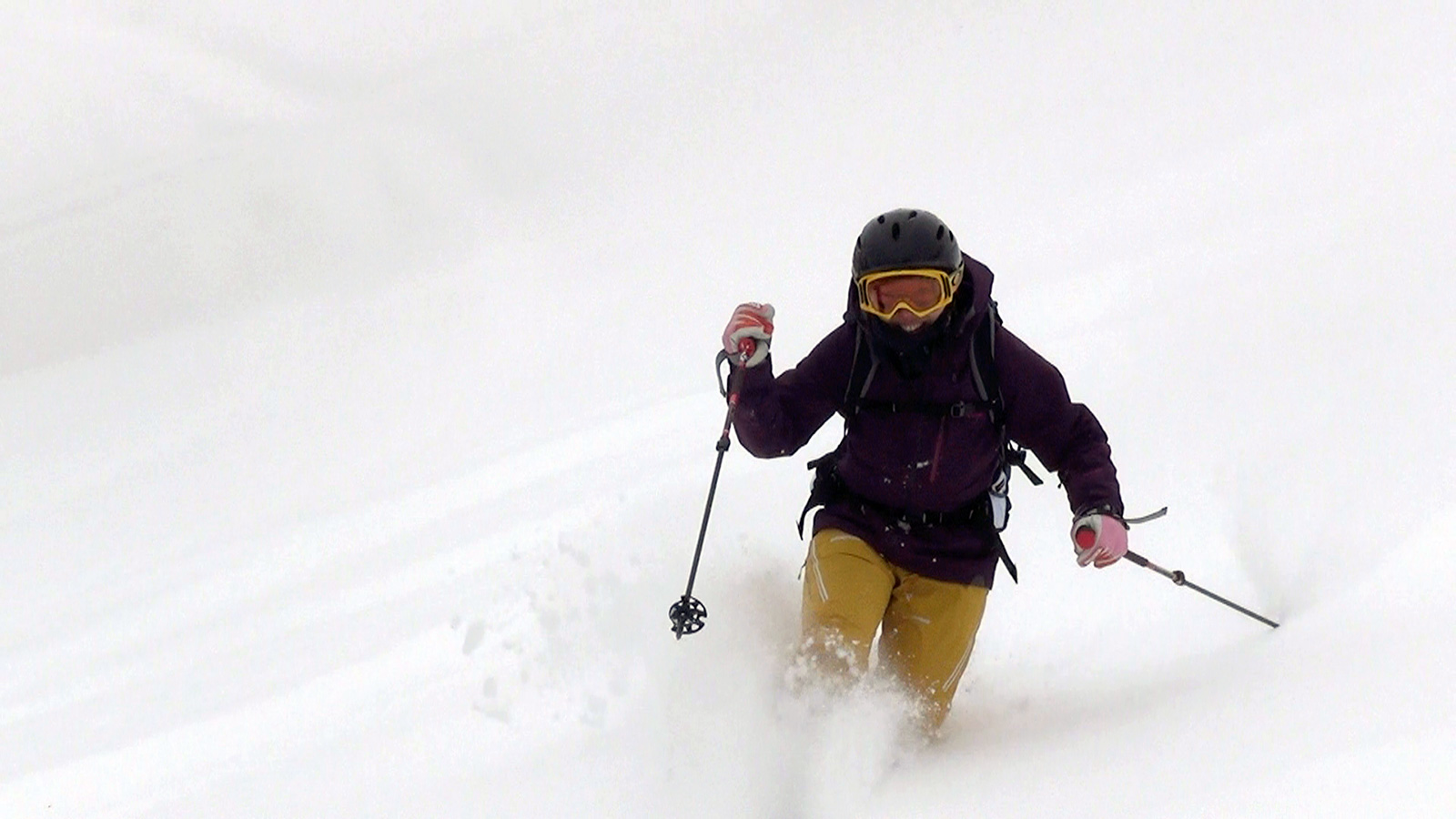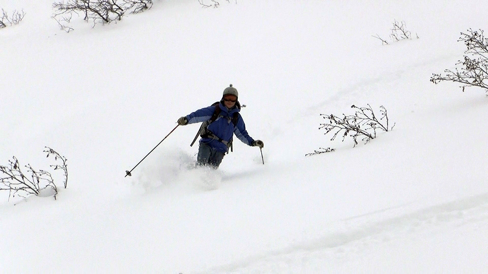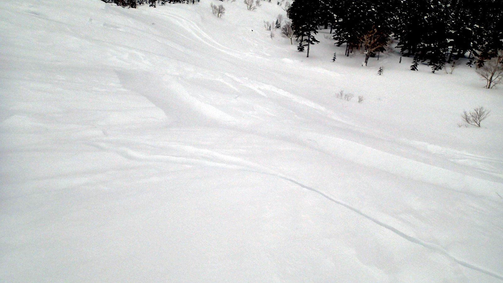 事前のピットチェックでは顕著な霜系の弱層はなかったが、標高1300mからは北側斜面のウィンドスラブに十分注意する必要があった。