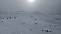 ロングトラバースして偵察した東谷も西の谷もボトムまで雪が飛ばされていた。