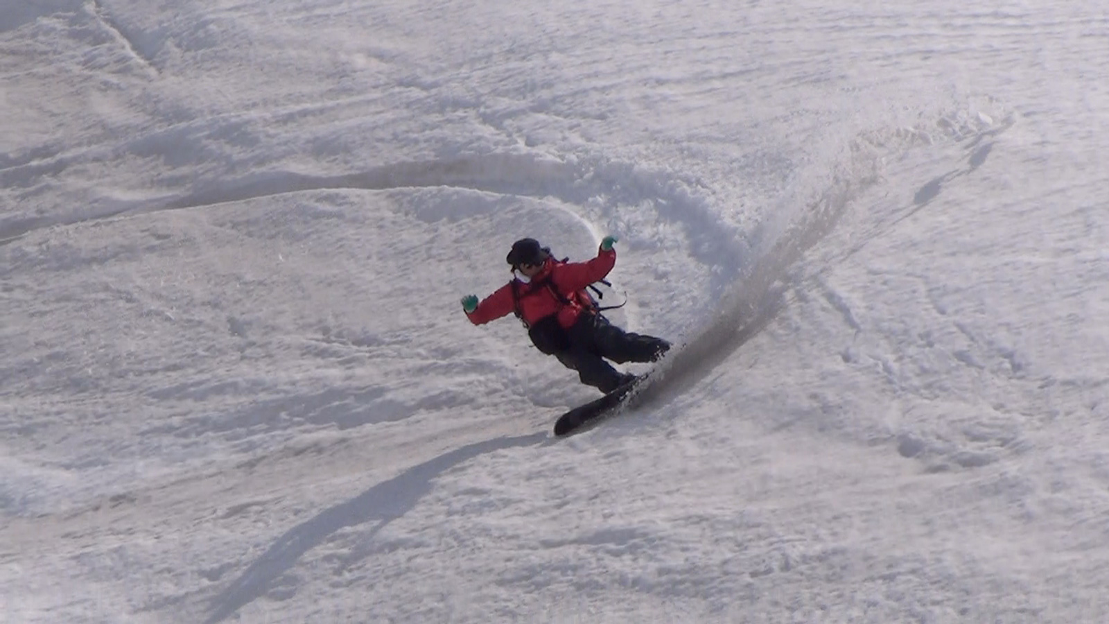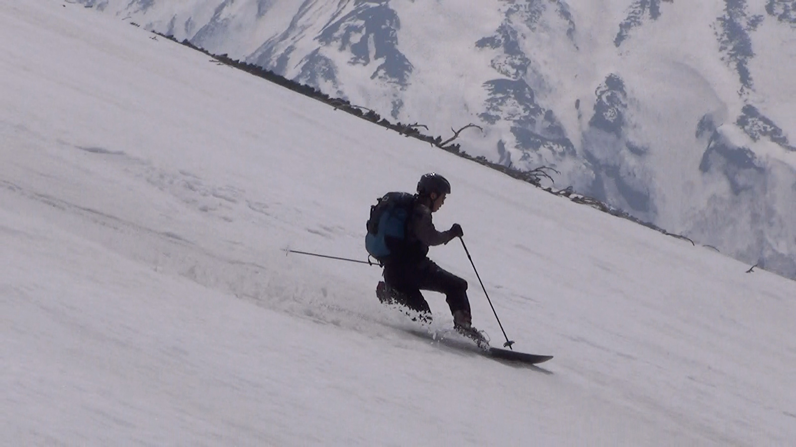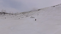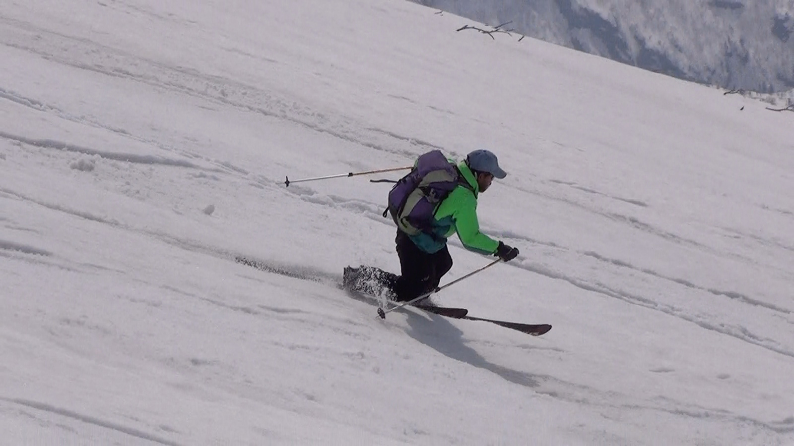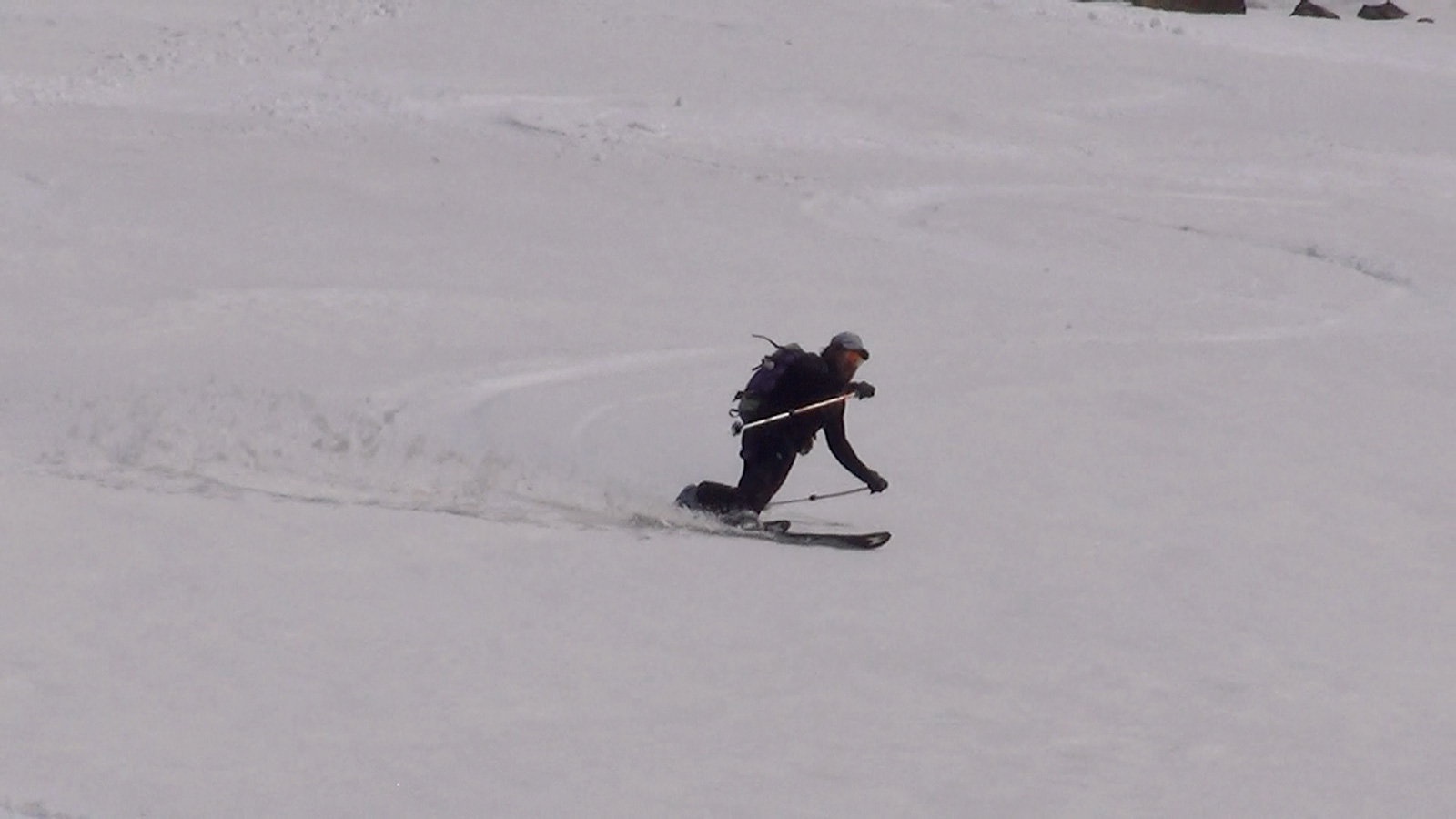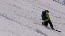 滑ってみると、昨日よりかなり良いコンディションだった。腐れ雪が浅めで、場所によってはザラメを快適に滑る事ができる。