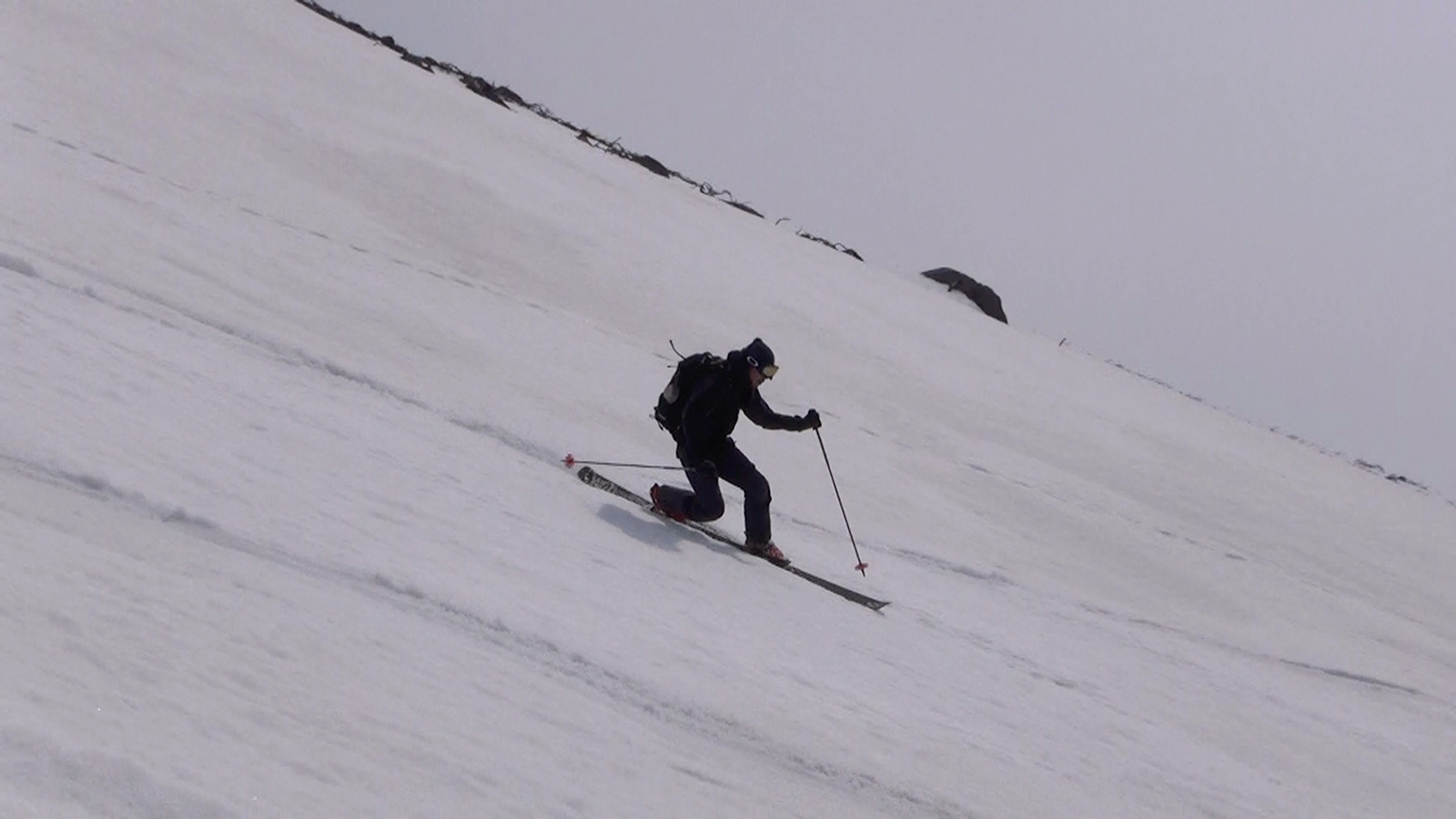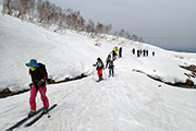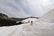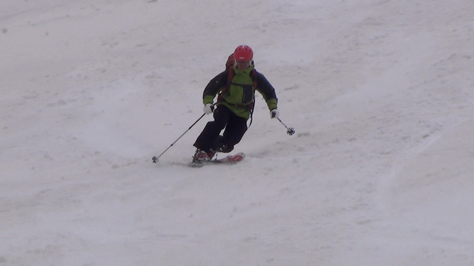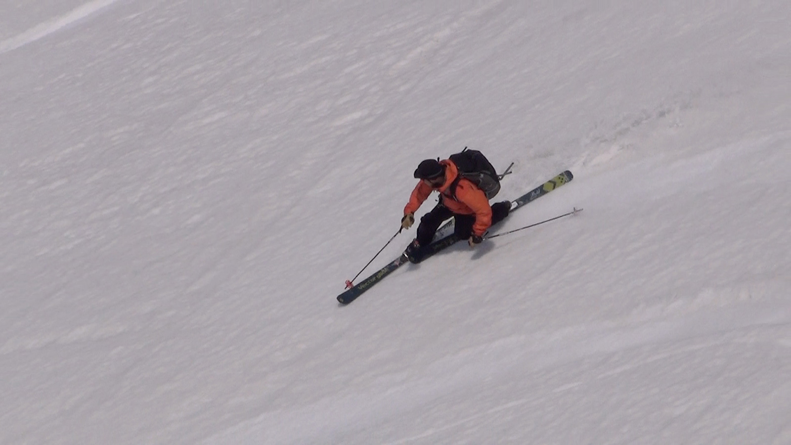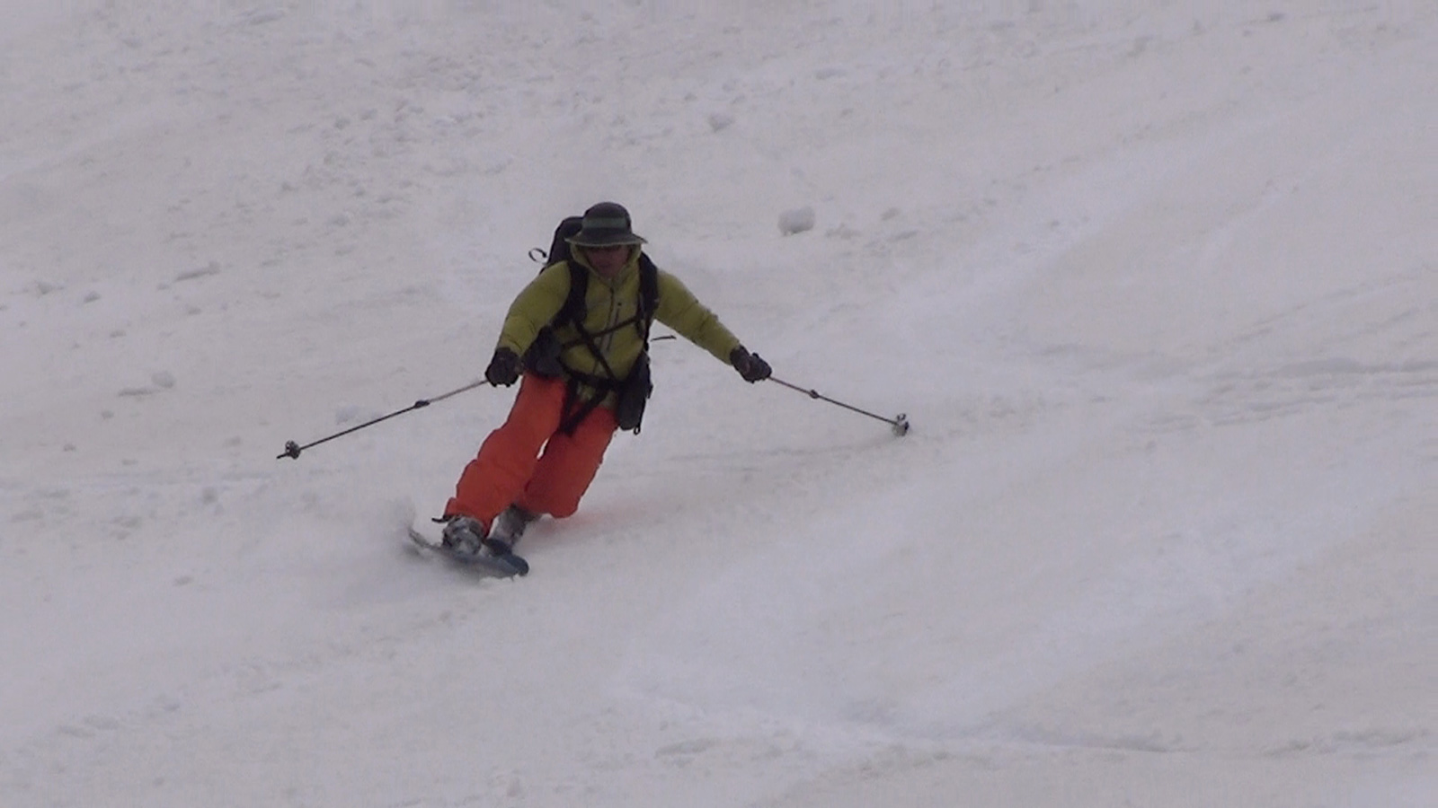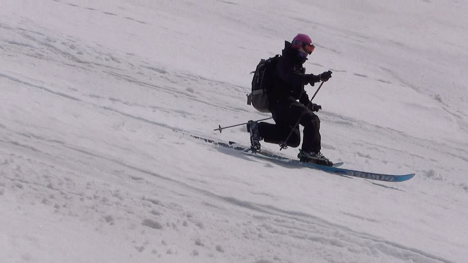 滑ってみると、昨日よりかなり良いコンディションだった。腐れ雪が浅めで、場所によってはザラメを快適に滑る事ができる。