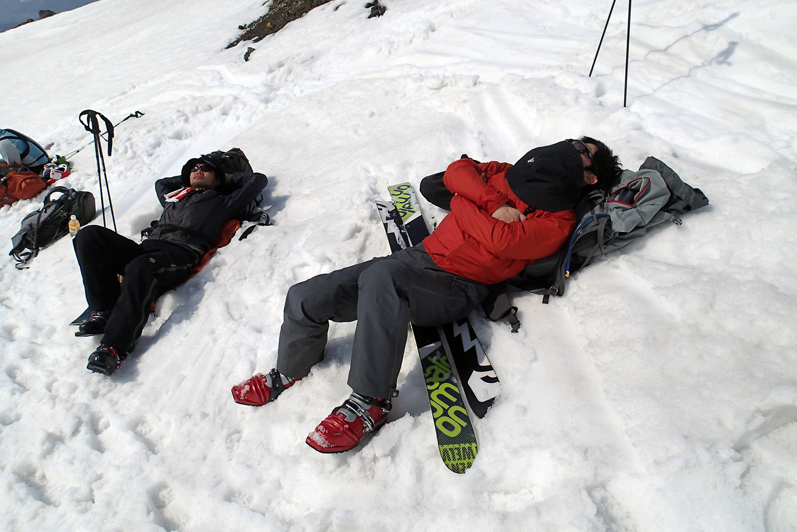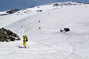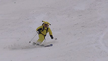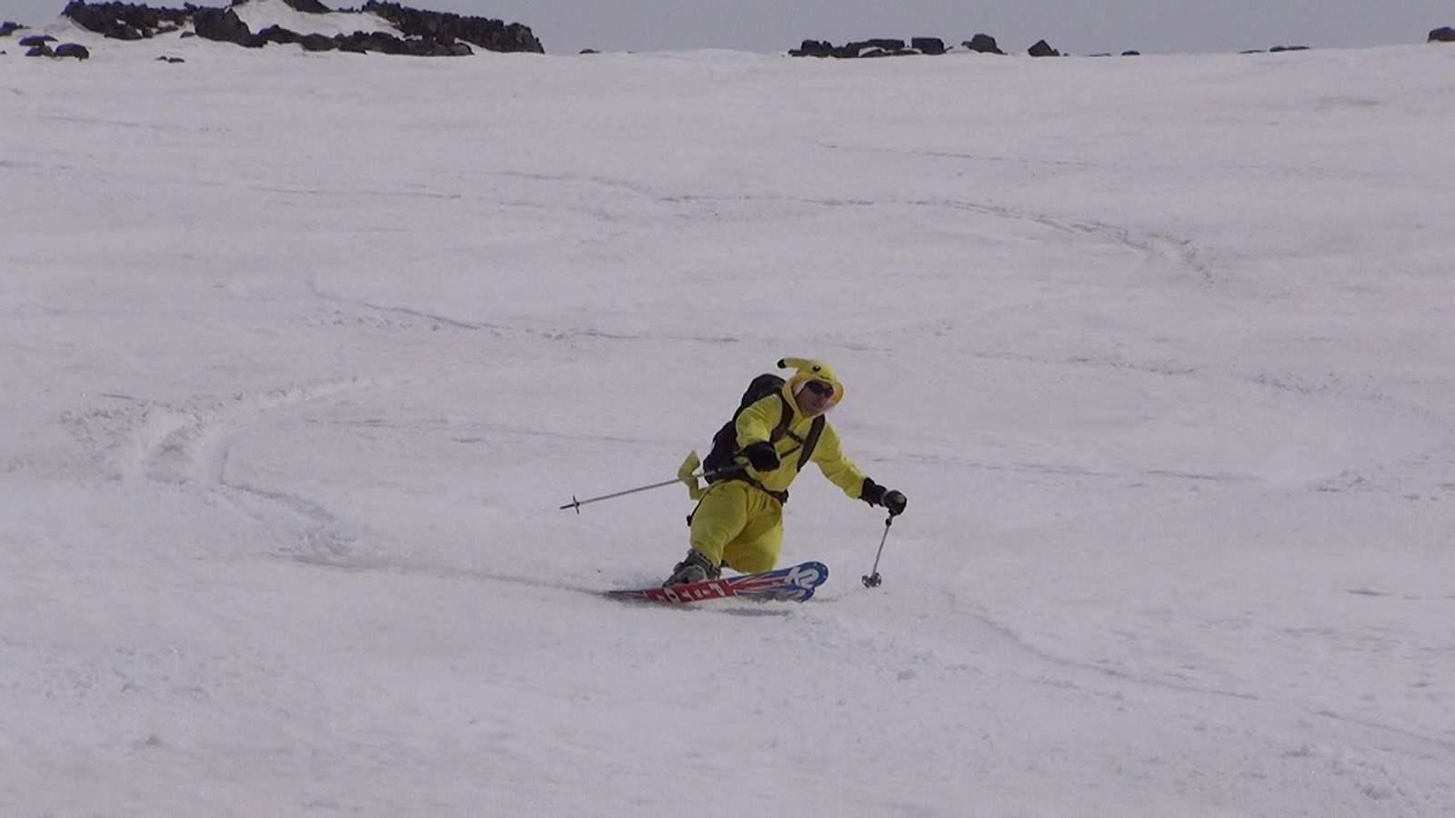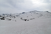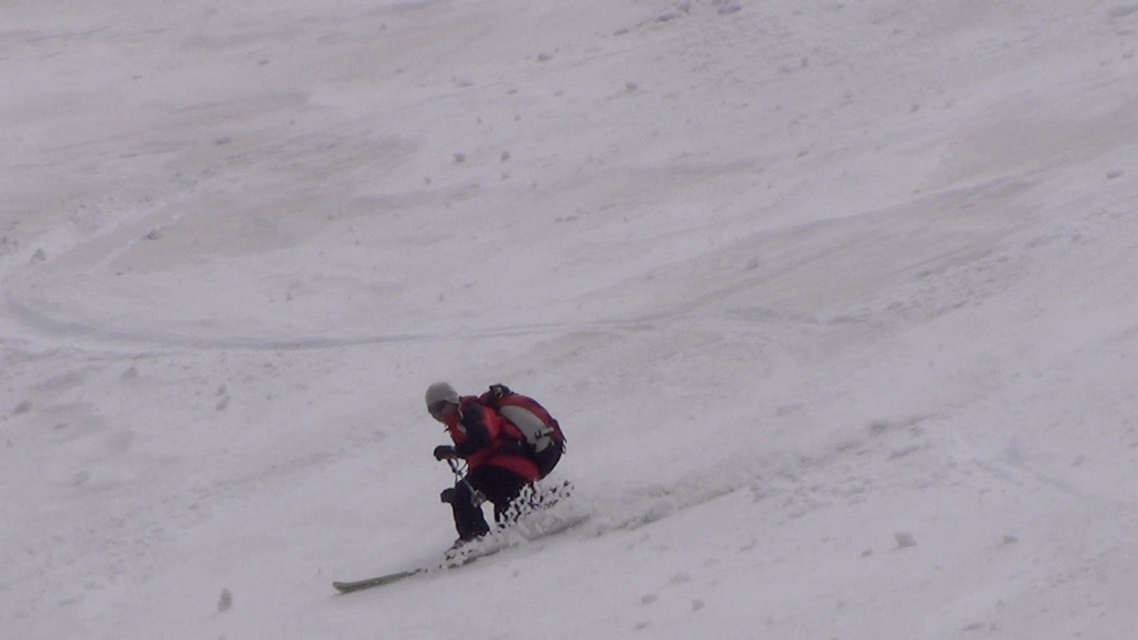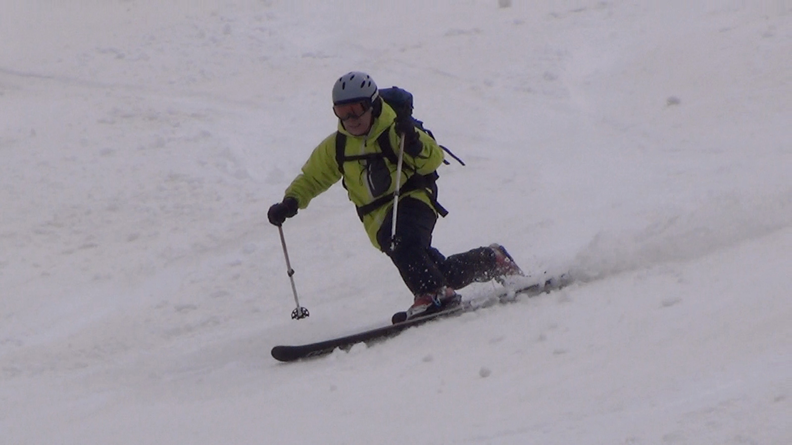 滑ってみると、昨日よりかなり良いコンディションだった。腐れ雪が浅めで、場所によってはザラメを快適に滑る事ができる。