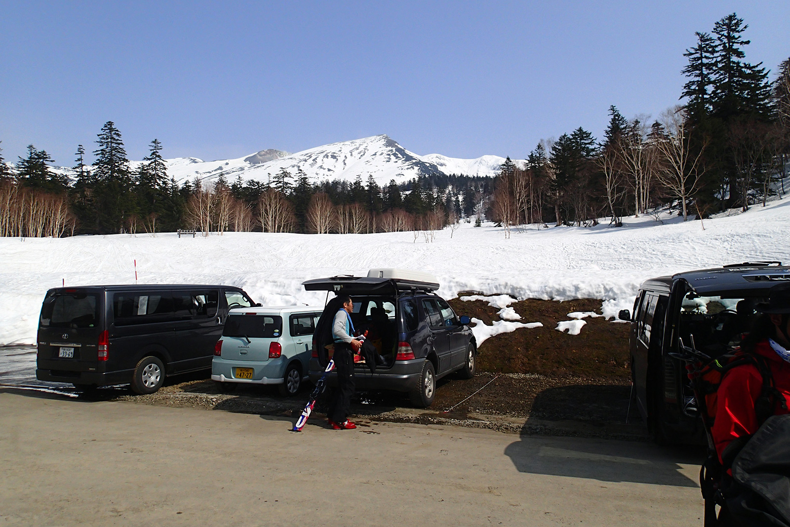 takahasiさん南極壮行会ツアー第三弾。昨日の腐れ雪と飲み過ぎにやられ気味。今日は十勝岳狙いの前十勝。つまり、一応十勝岳へ向かって行くけど、状況に応じて前十勝に変更するという作戦。