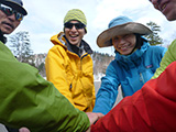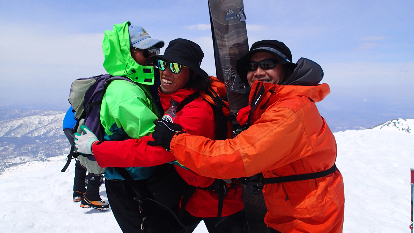 近年に無い達成感に皆で手を重ねた。素晴らしい仲間、素晴らしいロケーション・天候・雪(雪はちょっと・・アレだったが)に感謝。最高の二日間だった。
