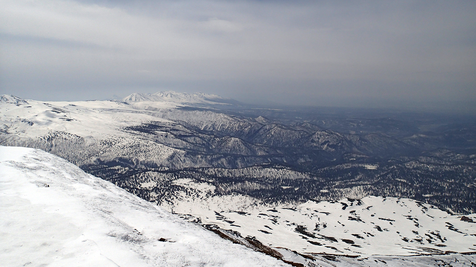 山頂は風速15mの風が吹き付けていたが、視界は良好で遠くの山並みまでよく見通せた。