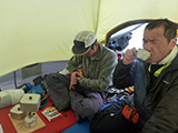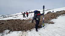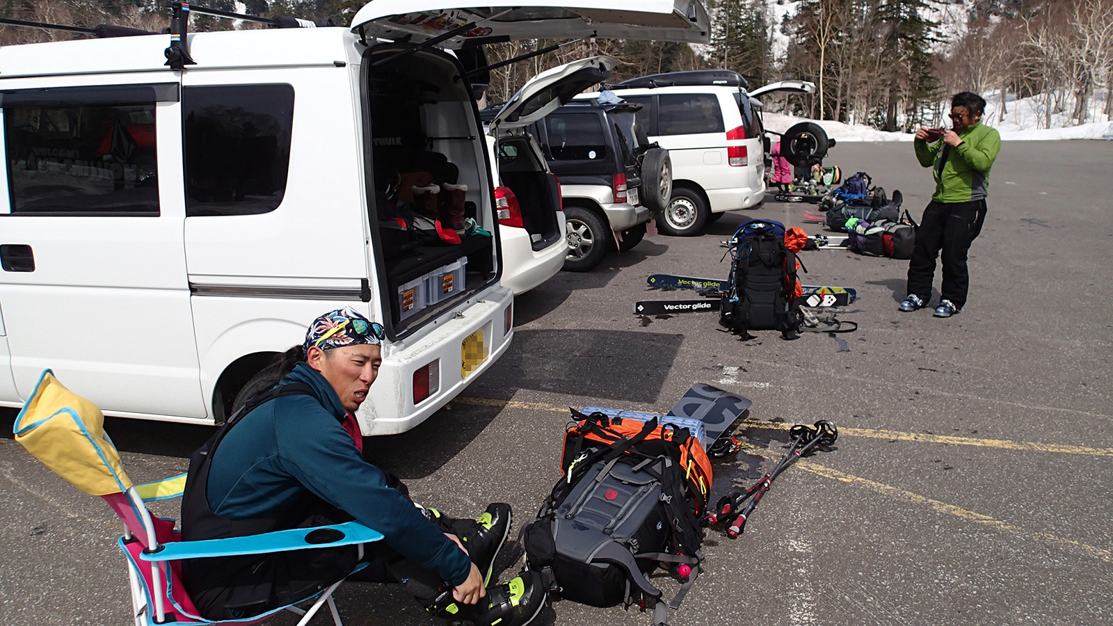 クラストが溶けないと滑落の危険性があるので、ゆっくり時間をかけて準備をしてから出発。