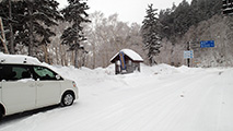 ツアー前日、外は吹雪。十勝岳積雪深テレメーターの数値は急降下中・・メンバーから電話が来た。
