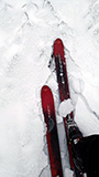 雪質:ウィンドクラスト上に15cmの新雪、上部はウィンドクラスト