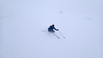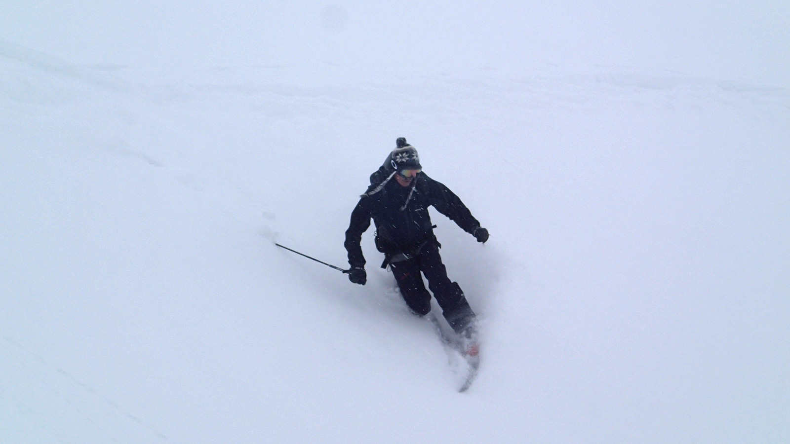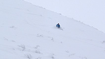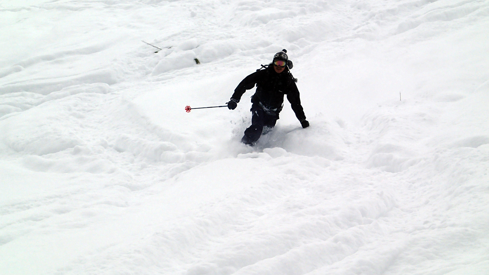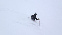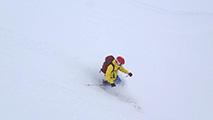 雪質:ウィンドクラスト上に30cmの新雪、上部はウィンドクラスト