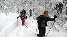 前回と比較すると、入山者が多くてやっと三段山らしい賑わいとなっていた。積雪も50cmくらい増えていて、ササがだいぶ隠れた。
