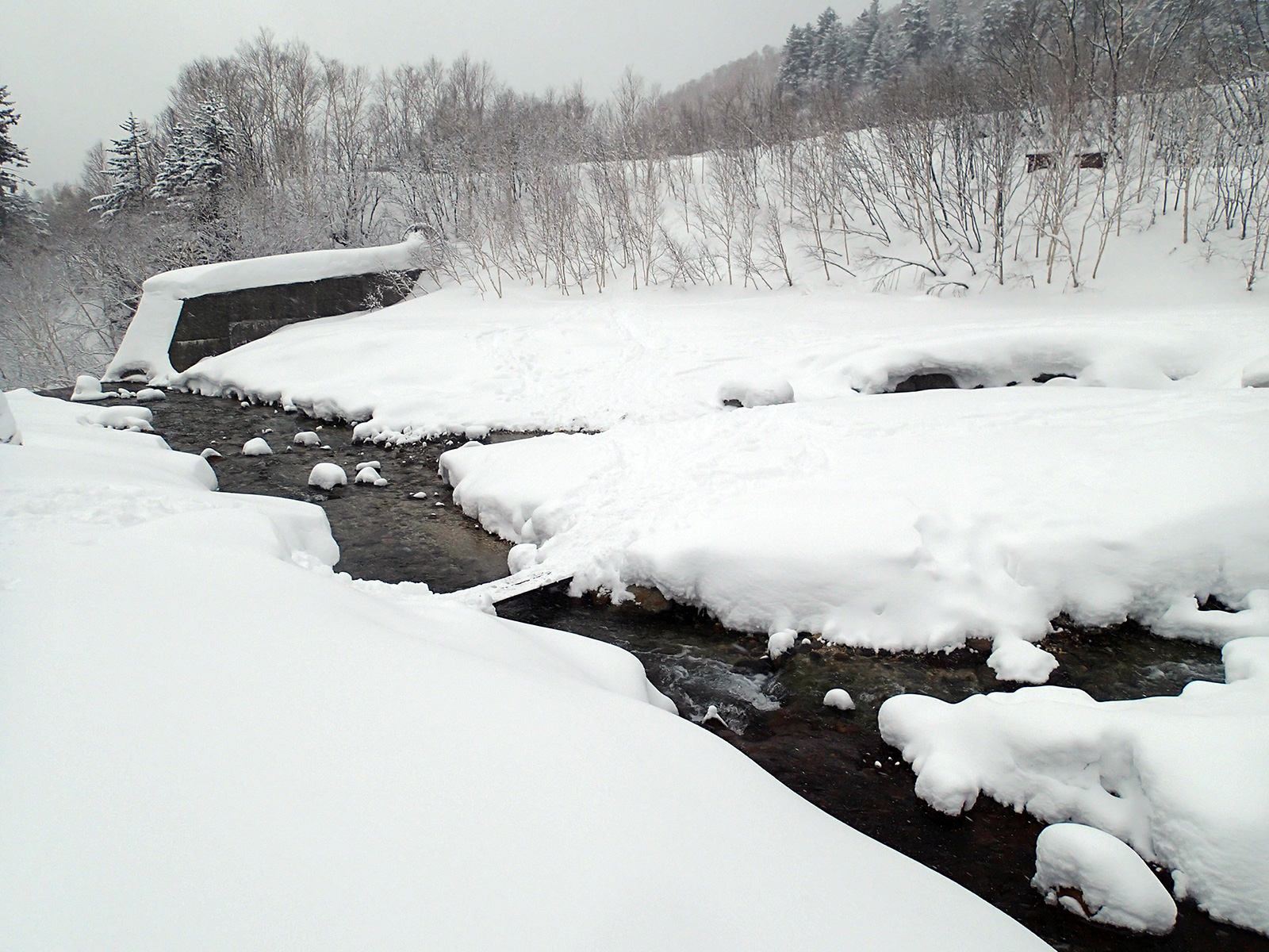 ヌッカクシ富良野川の渡渉地点には、誰かが梯子の橋を架けてくれていた。