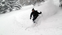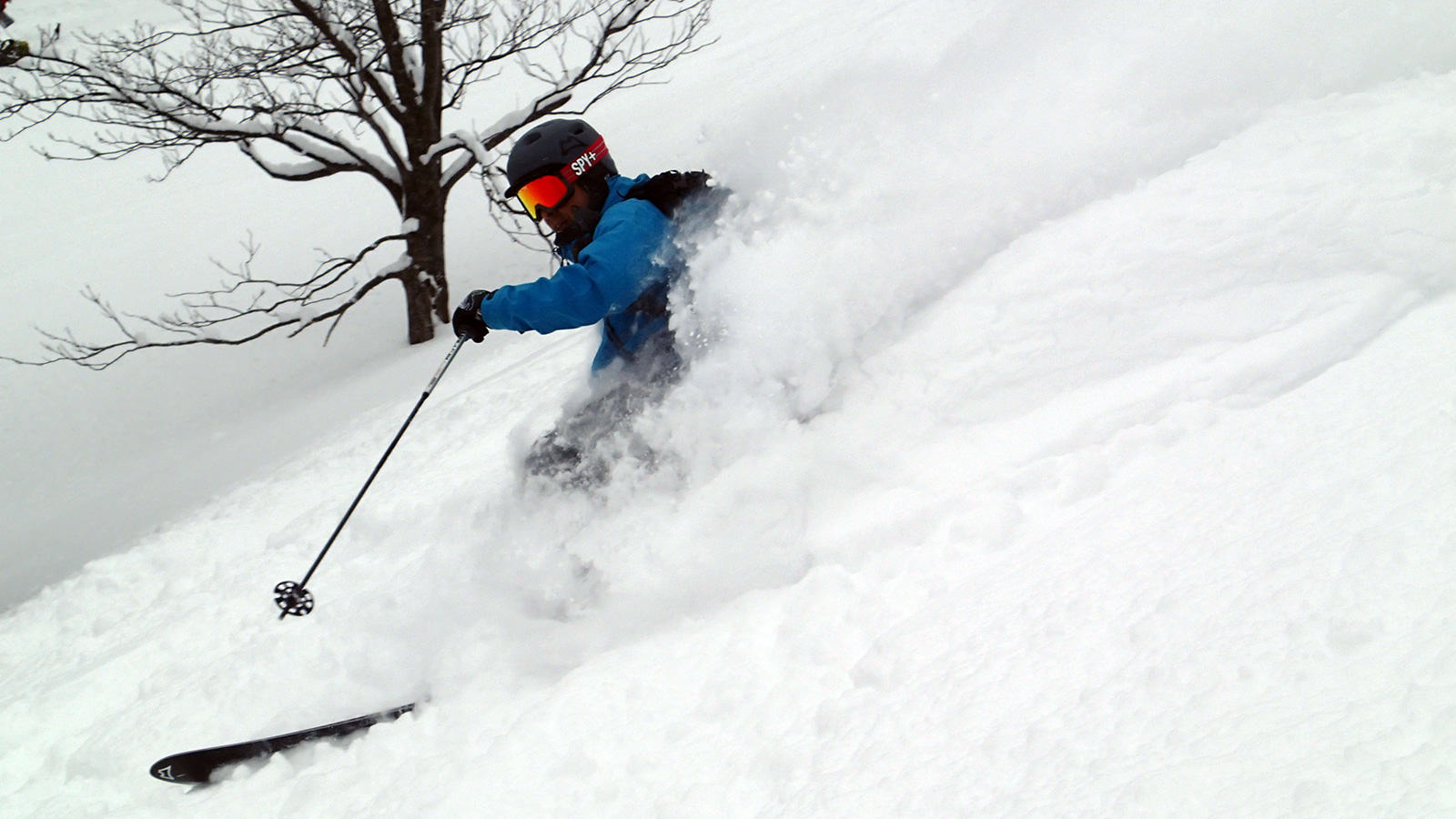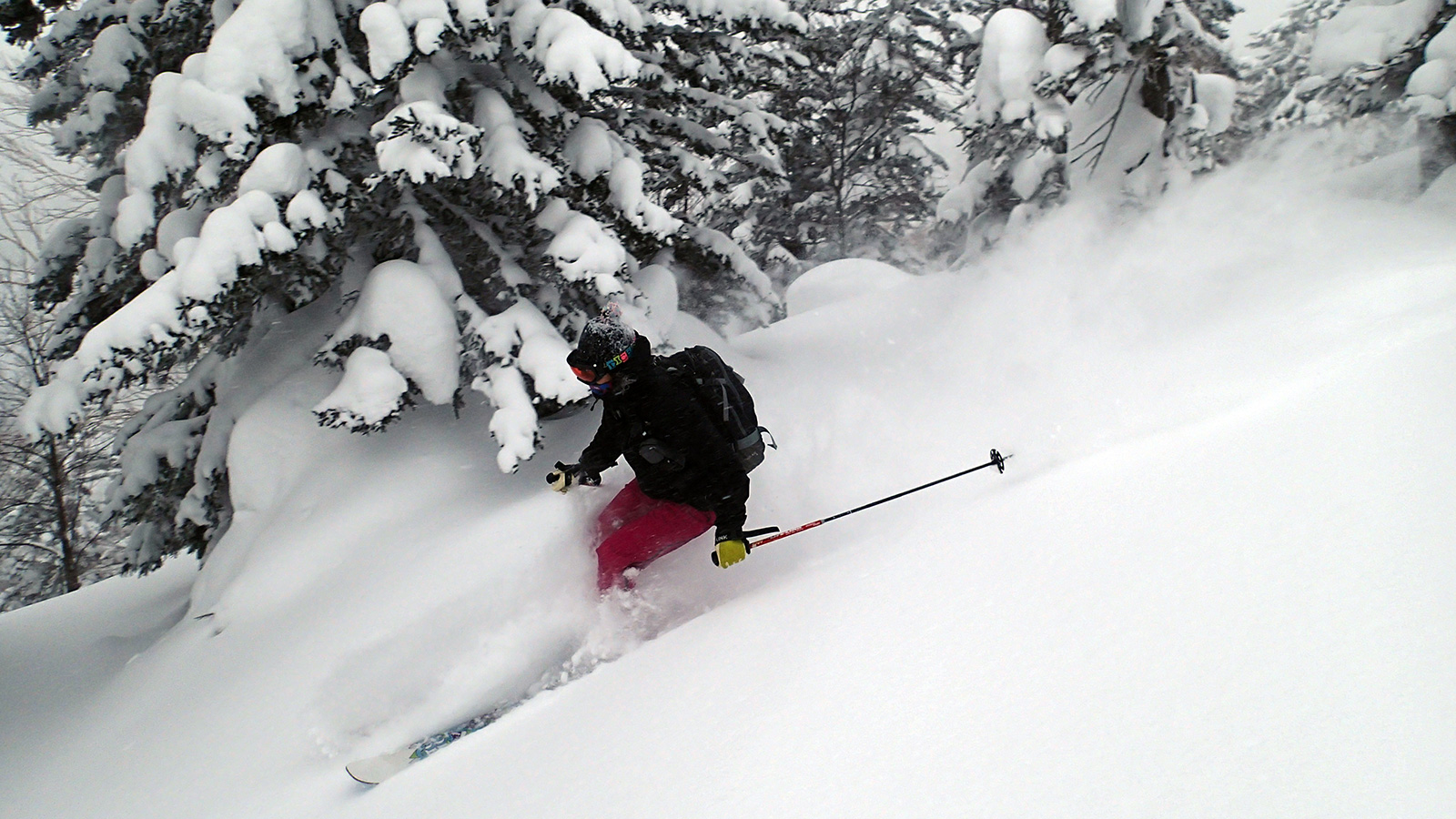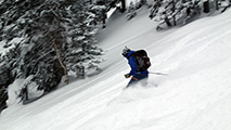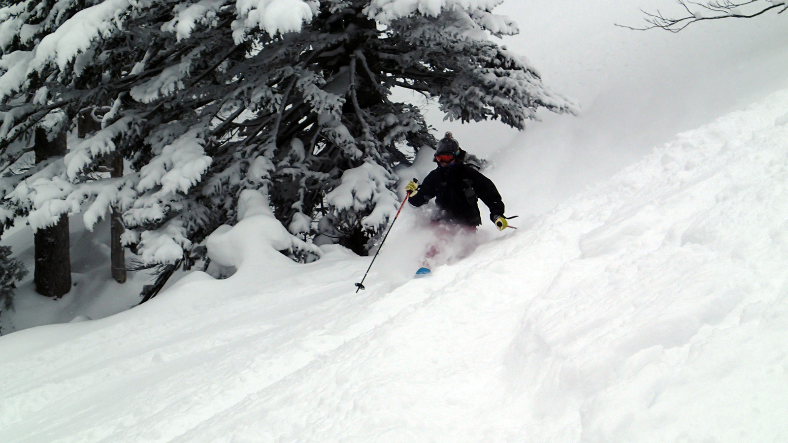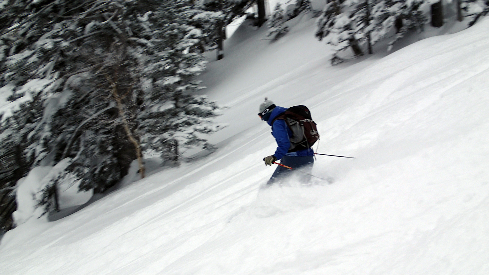 雪質:樹林帯は深くて軽い雪。森林限界より上はウィンドクラストの上に20〜30cmのウィンドスラブ