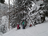 樹林帯にはしっかりしたトレースがあり迷うことは無い。ジグの傾斜はとても緩く、クライミングサポートが必要ないくらいだった。