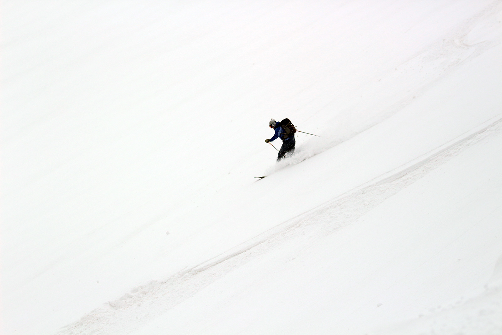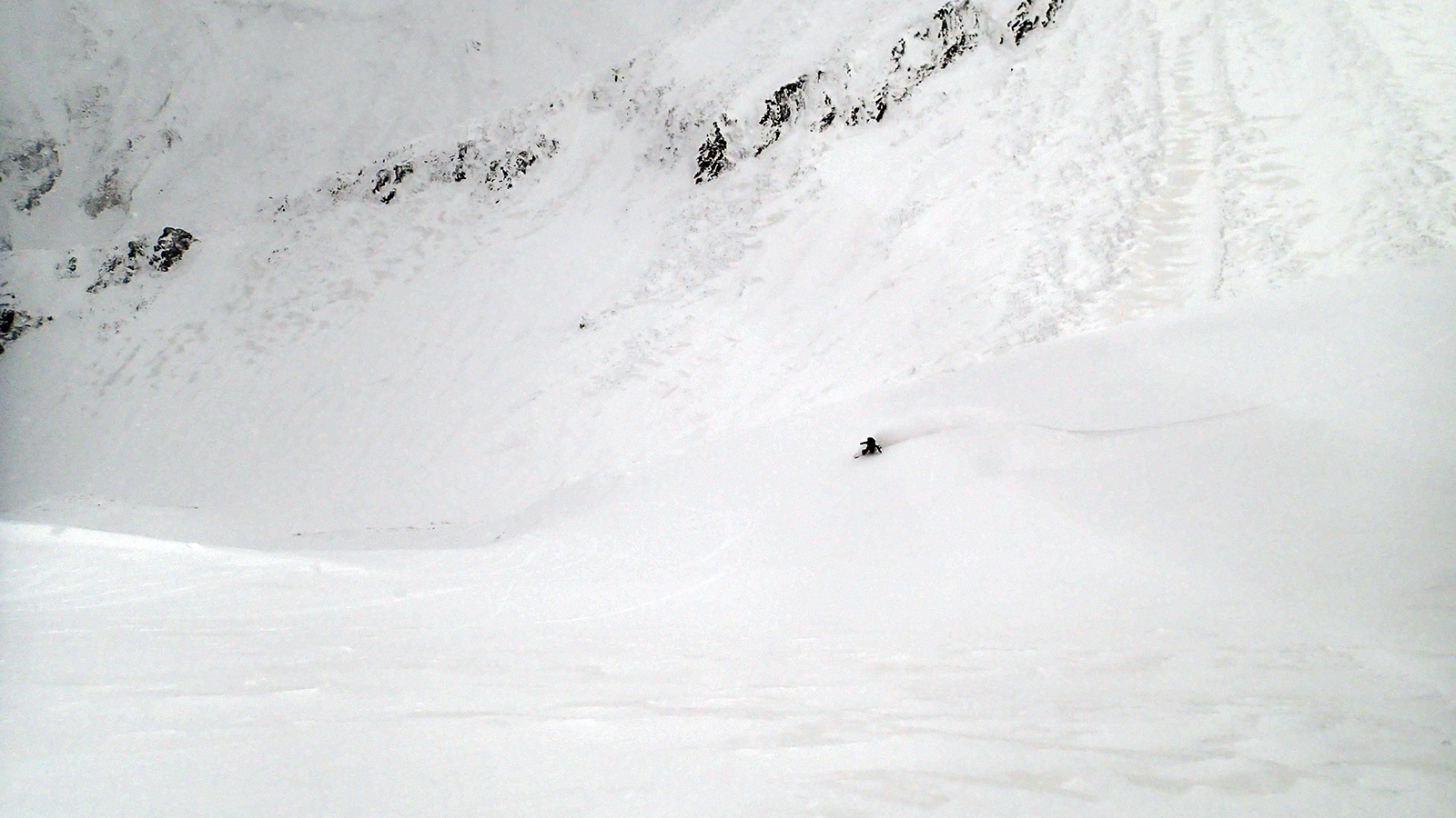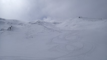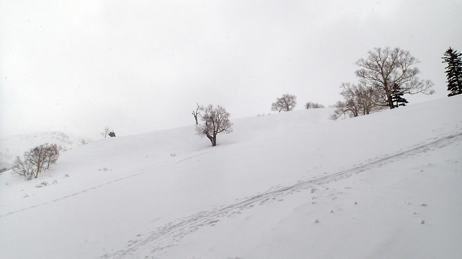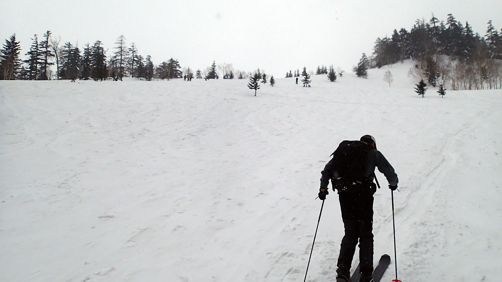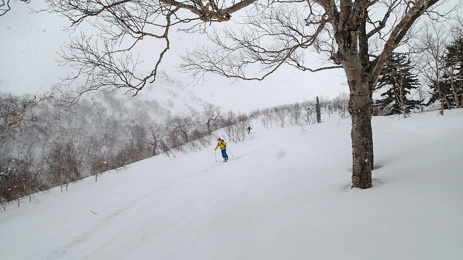 2015年3月22日(日) 微妙な天候の三段山、雪質も微妙でノーマル・ルートはガリガリ&ズタズタだった。こんな時にミラクルを起こすのは、いつもフリコ沢。 |