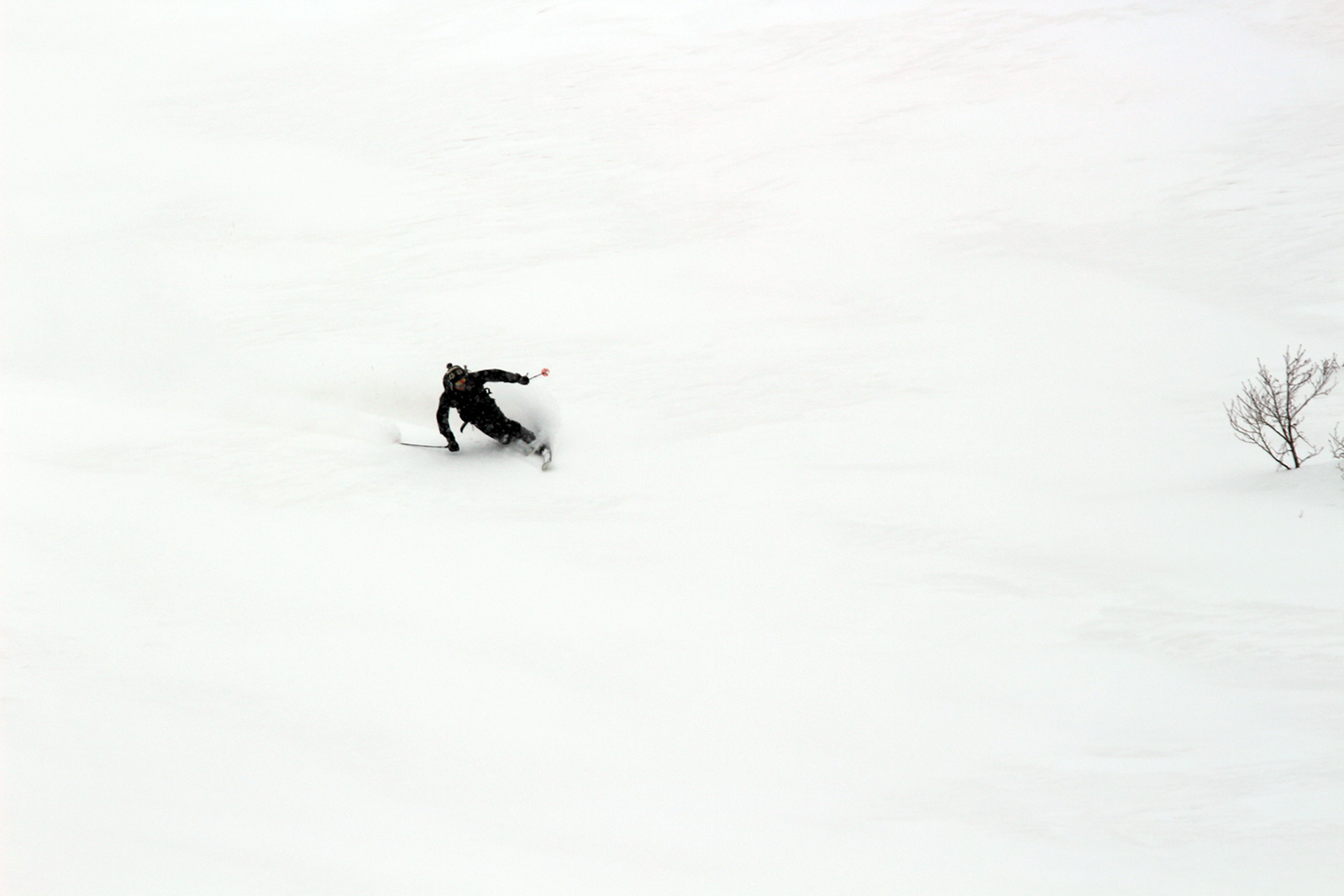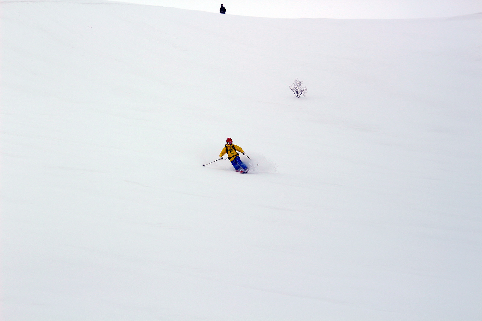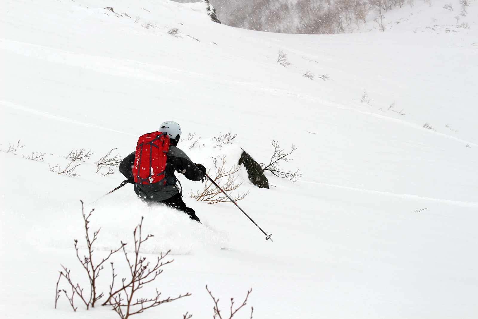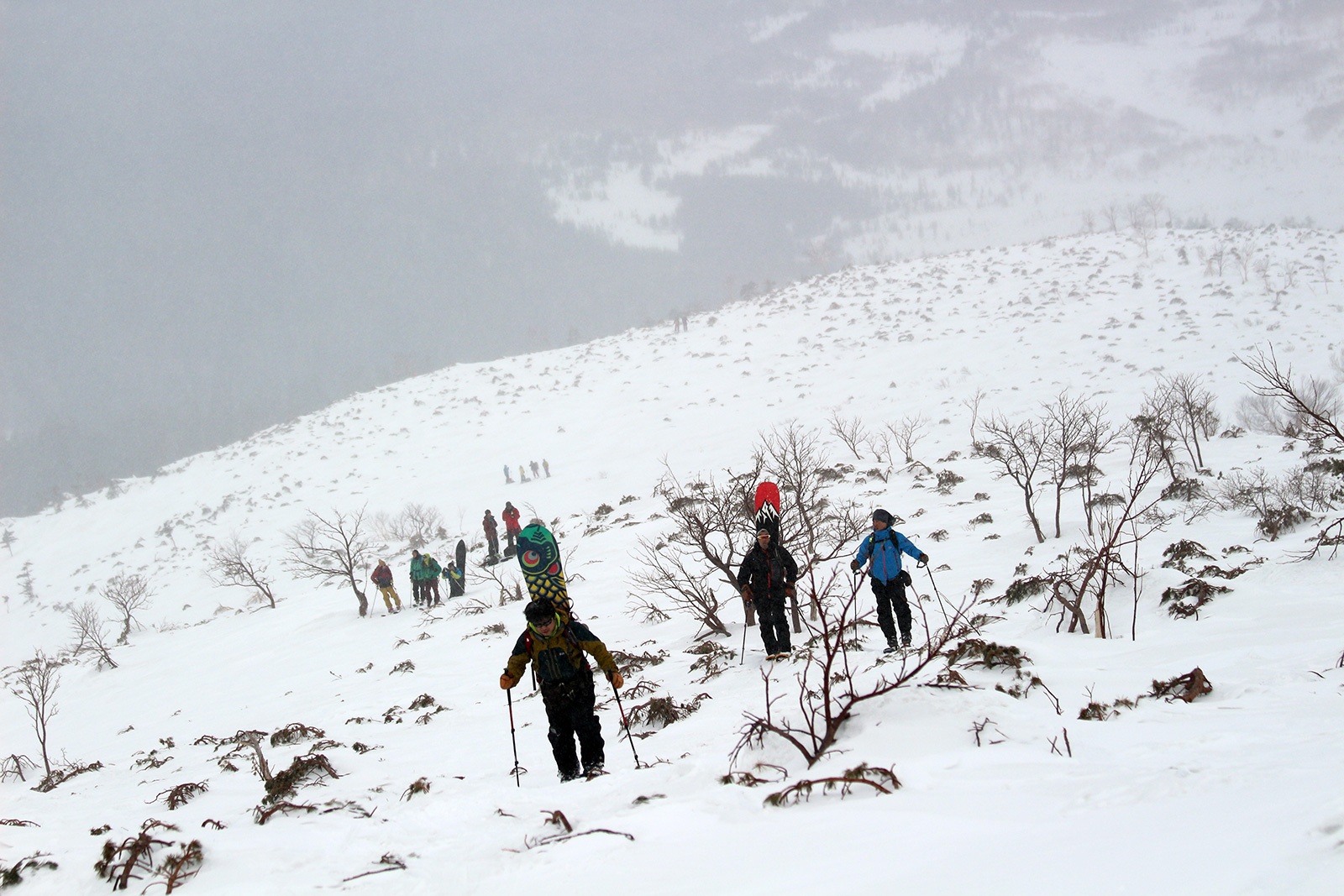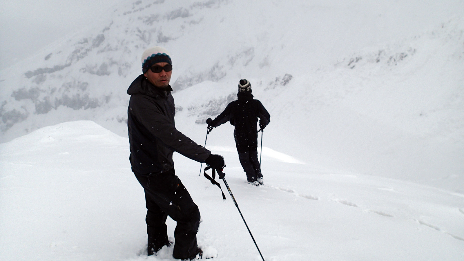 2015年3月22日(日) 微妙な天候の三段山、雪質も微妙でノーマル・ルートはガリガリ&ズタズタだった。こんな時にミラクルを起こすのは、いつもフリコ沢。 |