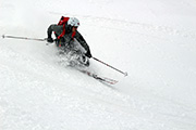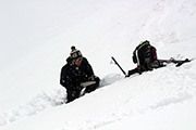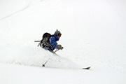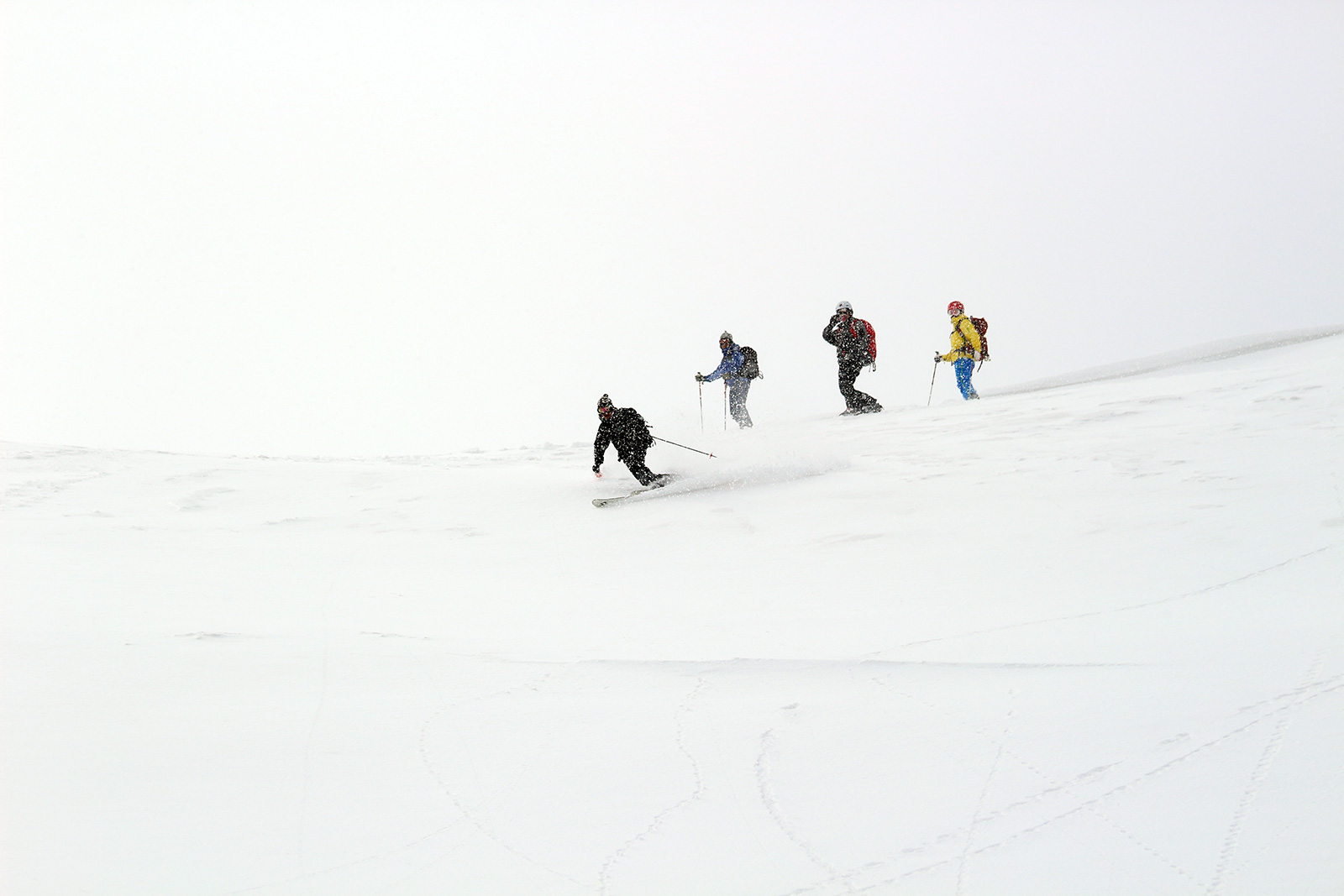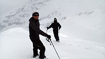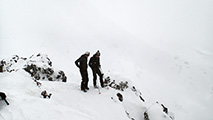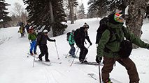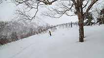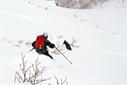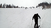 ![]() フリコ沢へ滑降開始 田中パパ 撮影:カズ |