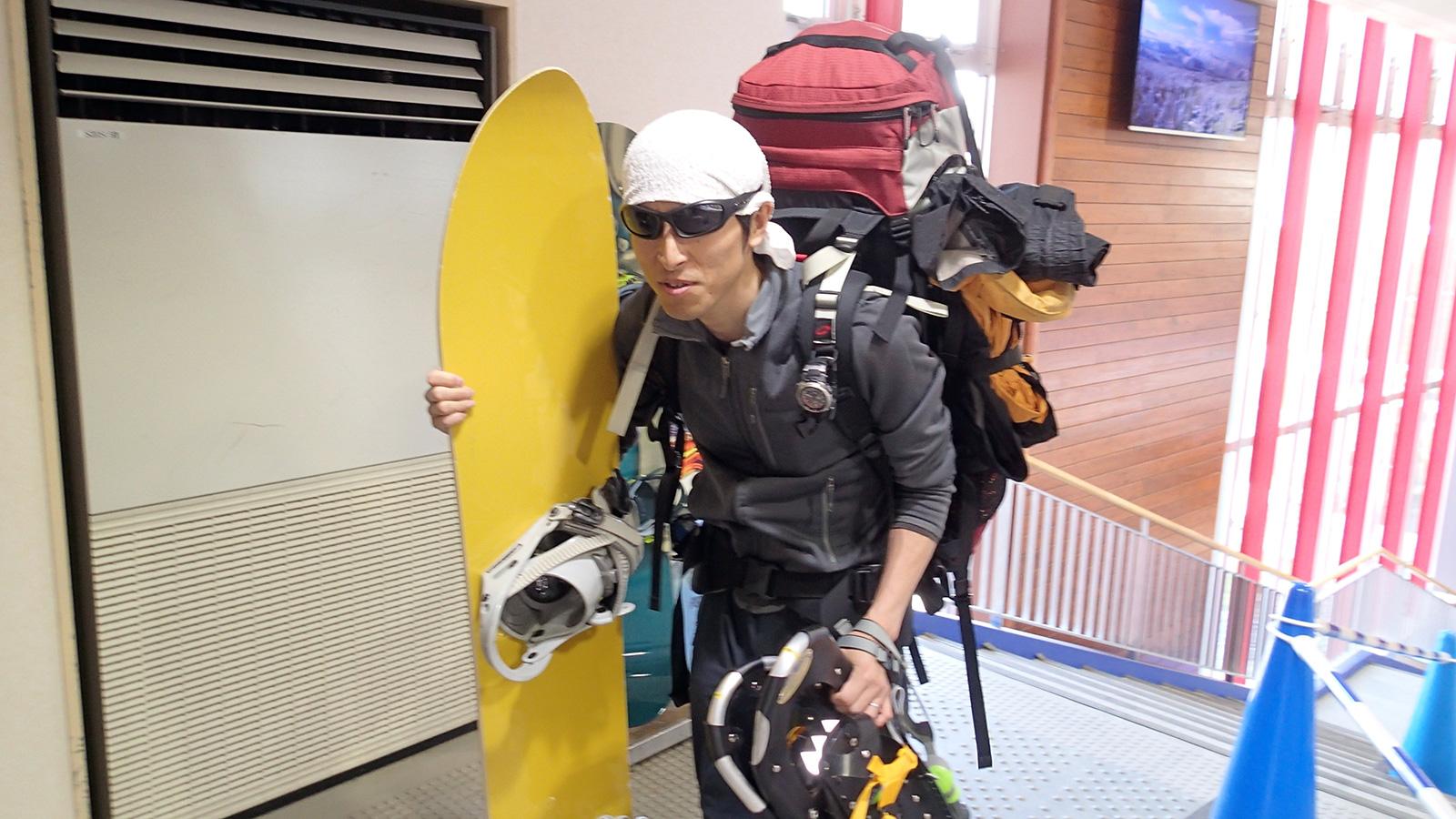 H本がスノーシューを忘れてきたので、旭岳ビジターセンターでレンタルするトラブルあり。
