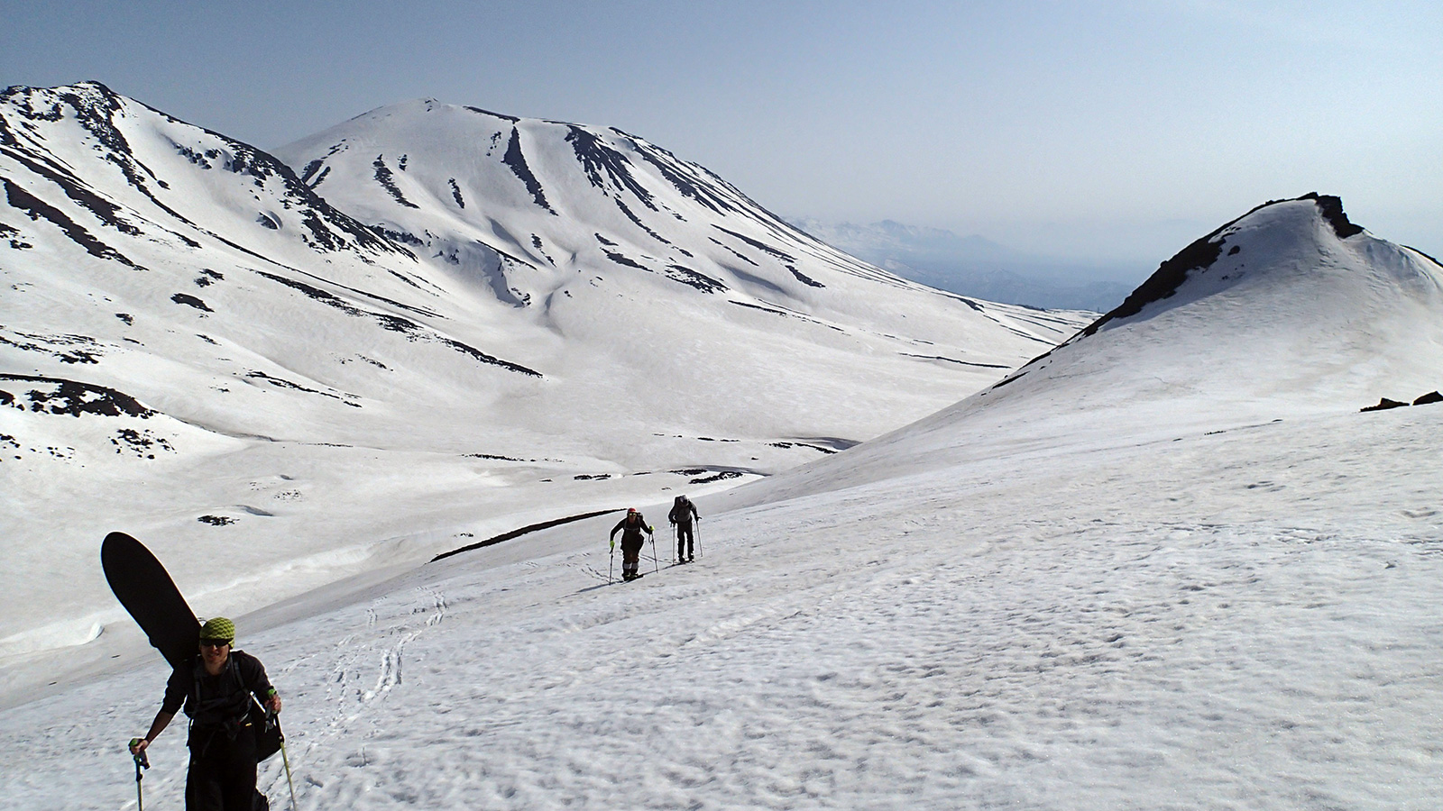 14時頃に安足間岳に向けて出発。南斜面の雪は腐り気味だった。