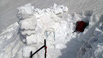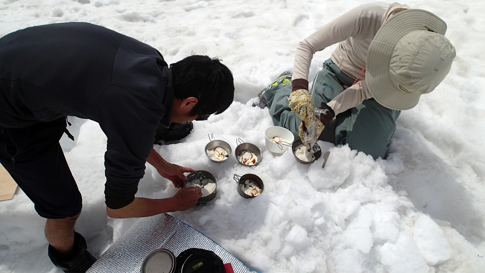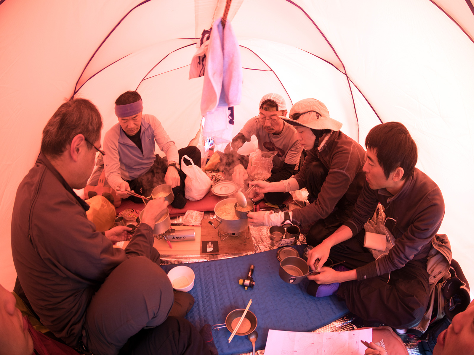 まさりんはテントに残ってストーブで雪を溶かして水を作ってくれていた。基本的に水は持ってきていないので、水作りは大事な仕事。まさりん、ありがとう。