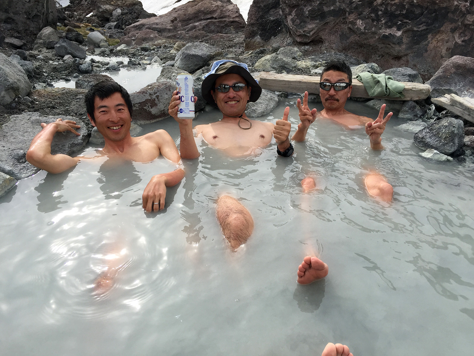 カズは早起きして中岳温泉の土木工事を行い、湯船の浚渫と泉源からの水路を整えてお湯の温度を上げてくれていた。感謝。