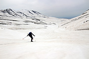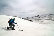 ルートは、雪が続いていてトラバースも少ないようにピウケナイ川を辿ることとした。この周辺の谷は広く浅く、まるで氷河地形を歩いているような気持ちになる。日差しが強くて大西はすぐに半袖半ズボン状態。近くに見えた北鎮岳は意外と遠く、なかなか到達できない。