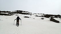 雪量・雪質:中岳温泉から鋸岳付近経由北鎮岳のスキーアプローチは問題なし。滑りやすいザラメだが、部分的にストップ雪