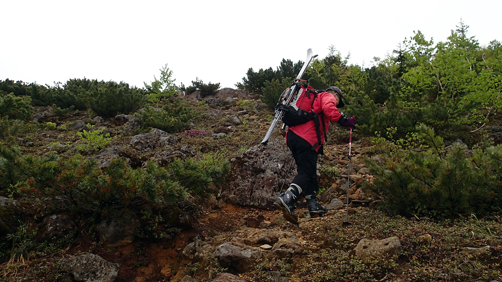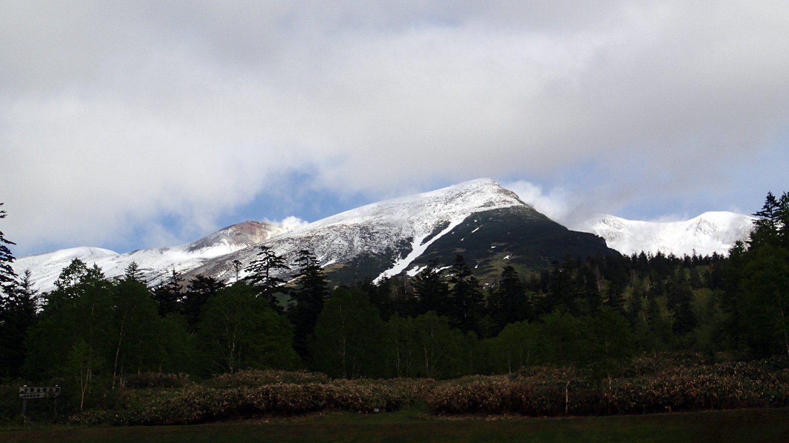 天候は曇り、十勝岳連峰も雲に覆われていたが、晴れると信じて入山。