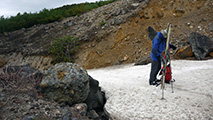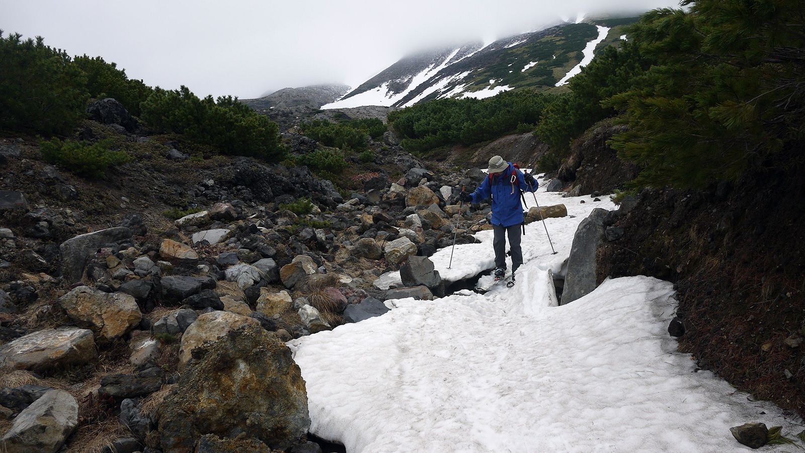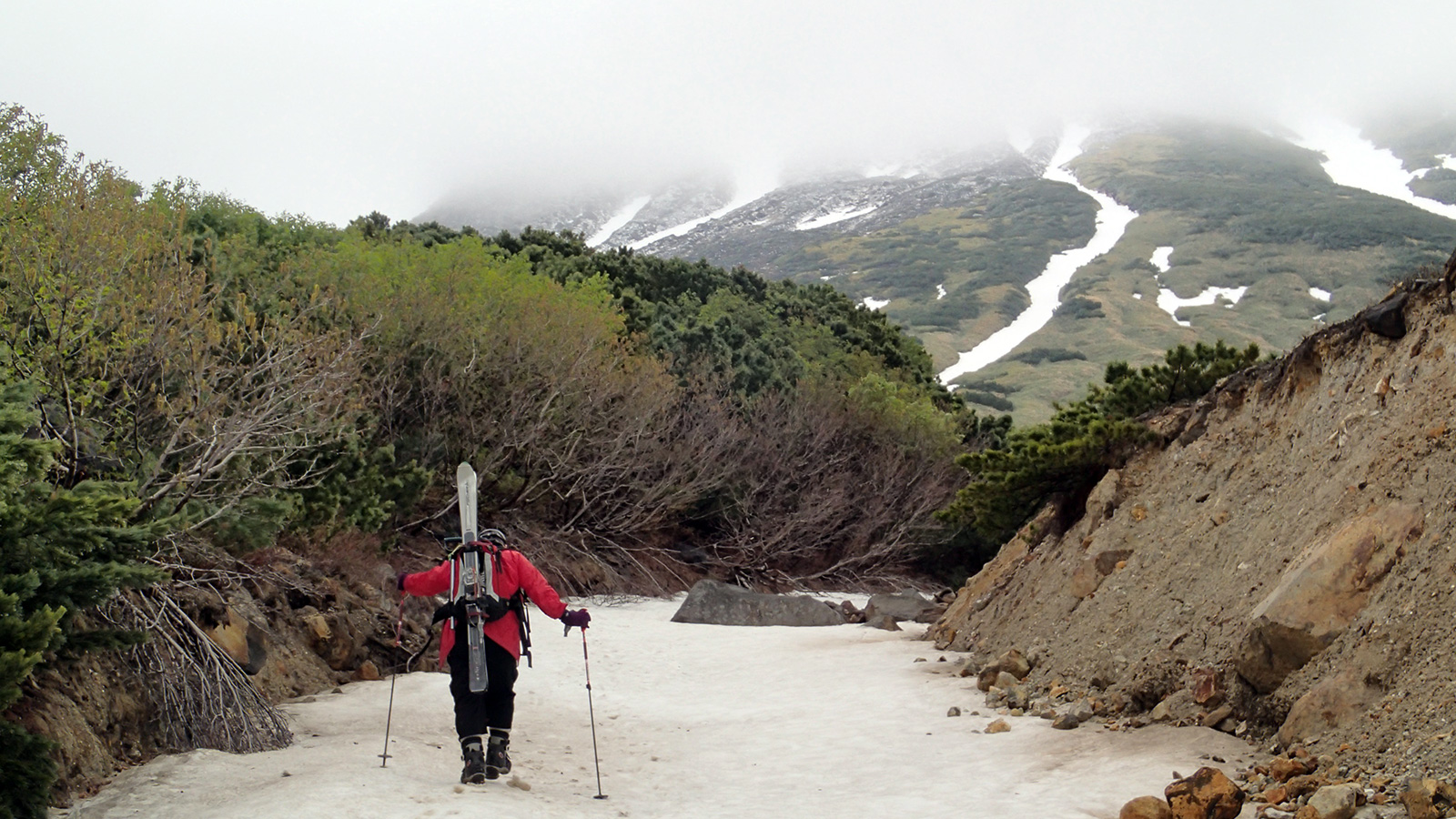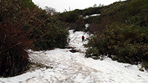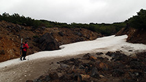 前回同様、雪の回廊が残っていて、千春沢の藪漕ぎも無かった。連日の低温と降雪により、十勝山系の残雪量は例年並みになったようだ。
