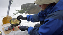 先週もご一緒した単独行の清水さんは、真面目に高度を上げていったが、不真面目な我々はただ待つのも芸が無いということで、ここで焼肉をすることにした。