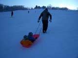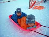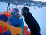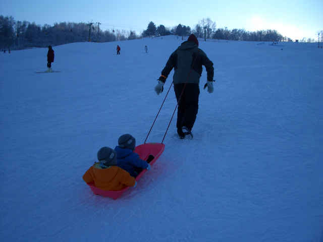 | 2006年1月15日(日) 旭川伊の沢市民スキー場(ここはローカルキッズのパラダイス) 天候:晴れ メンバー:旦那家 計4名 伊の沢スキー場のデータ: 所在地:旭川市神居7条18丁目 施 設:リフト2基445m(ナイター照明完備) 料 金: 1回券/大人150円・小人120円 回数券(11回)/大人1,500円・小人1,200円 1日券(9:00〜17:00)/大人2,000円・小人1,700円 ナイター券(17:00〜21:00)/大人1,000円・小人800円 利用期間:12月上旬〜3月下旬 ここは近所のローカルスキー場。テレマークを始めた頃には手近な練習場として大変お世話になった思い出深いスキー場だ。最近はご無沙汰していたが、今度は子供達の遊び場として行ってみた。 行ってみてビックリ。ゲレンデのスキーヤーの8割は子供か子連れの親子。 子供達専用のフィールドも用意され、すっかり子供スキー場と化していた。 危なっかしいカッ飛びボーダーも、暴走スキーヤーも居ない。無料休憩所はご近所ママ達の社交場。恐るべし伊の沢スキー場。市民スキー場の鏡? |