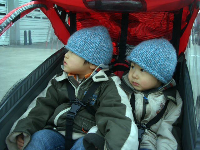 寒いので、しっかりフードを被せます